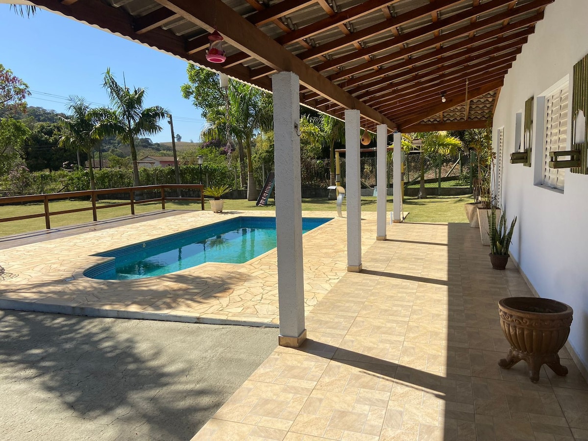 Refúgio em Condomínio: Lazer completo a 115km de SP, perto de Socorro/Pinhalzinho. Piscina, churrasqueira, fogueira, playground, campinho. 4 quartos (camas casal, treliches, king, viúvo), 3 banheiros, Wi-Fi, Smart TV, Alexa, fliperama (9000 jogos). Lavanderia. Ideal para relaxar e curtir a natureza. Próximo a atrações turísticas.