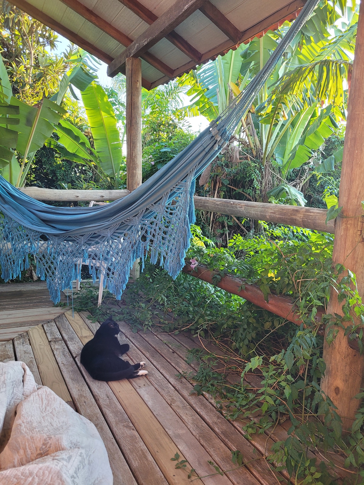 * Suíte com cama queen-size, banheiro privativo com vista para o bosque. * Acesso exclusivo e privativo através de uma escada. * Vista para o nascer do sol entre as montanhas. * Itens básicos na suite para o preparo de um café ou lanche. * Varanda compartilhada com cadeiras de balanço, ideal para relaxar ao ar livre.