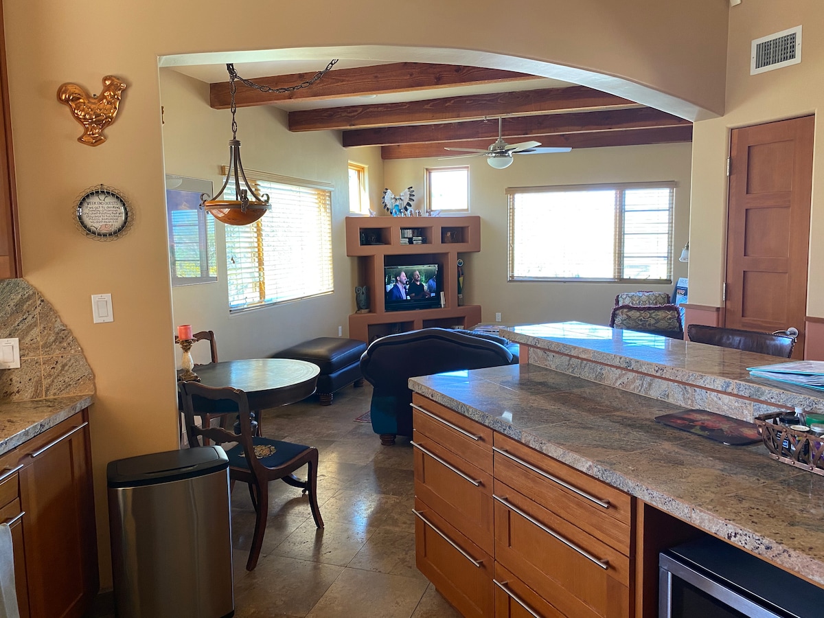 Mi Casita is a private resort style Casita in the Sonoran Desert located in the beautiful horse country of N. Scottsdale. While connected to the main residence, (Casita is not accessible to main house for guests) the casita has it own private entrance on the opposite side. A wonderful private patio with seating and gas grill along with beautiful views, complete the space.