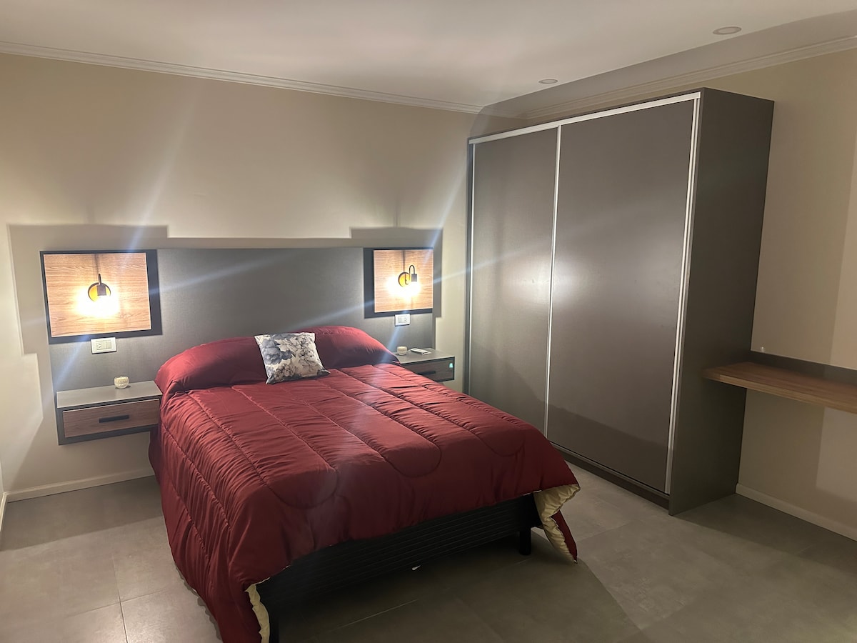 Ideal departamento para hasta cuatro personas en la zona centrica de pergamino, cercano a bares, restaurantes, parques y centro comercial. Cuenta con una cama matrimonial y dos camas individuales. Cocina completamente equipada con barra con vista panoramica al centro de la ciudad y baño de categoria con bañera.