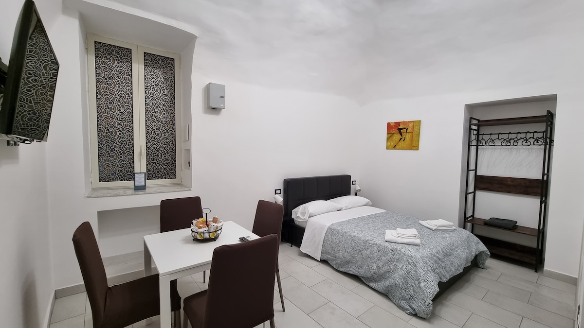 Il fascino di un soggiorno nella Napoli antica, a due passi dai luoghi storici, artistici e folcloristici ............ " Nel cuore del Centro Storico, col suo vasto patrimonio artistico ed architettonico che l'UNESCO ha dichiarato patrimonio dell'umanità. Per la posizione strategica della casa potrete conoscere la vera Napoli tutta raggiungibile a piedi ... tutta intorno a voi ... " La cattedrale, I Decumani, Napoli Sotterranea, le antiche chiese, le pizzerie, gli artigiani e la famosa S. Gregorio Armeno (la strada dei presepi e dei pastori) sono a pochi passi. Situata al primo piano di un palazzo del '600,gli ambienti sono stati ristrutturati con gusto e raffinatezza per rendere confortevole ed accogliente il soggiorno ai propri ospiti. Le metropolitane, l'aeroporto, le stazioni ferroviarie, il porto e le autostrade sono raggiungibili agevolmente. Rifinita in un elegante colore bordeaux, questa romantica casa può ospitare fino a quattro persone. E'composta da un delizioso ed ampio soggiorno con divano letto alla francese e zona pranzo con cucina totalmente attrezzata. Ha un soppalco con letto matrimoniale e bagno con doccia. L'appartamentino è dotato di ogni confort, TV, connessione wireless, impianto autonomo di riscaldamento e aria condizionata.