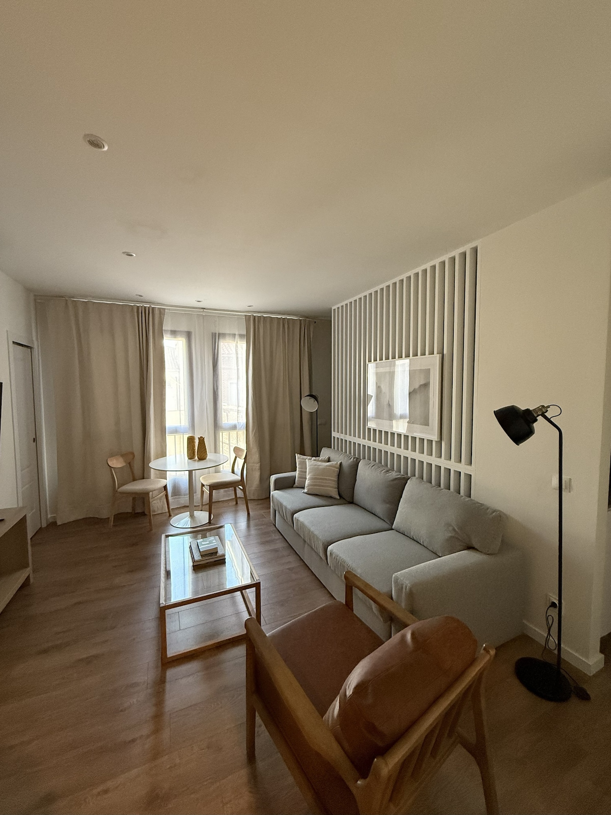 Desconecta de la rutina en este alojamiento único y relajante. El espacio está decorado con un estilo nórdico, moderno y funcional. El estudio dispone un salón con luz natural, con un cómodo sofá cama, un butacón, Smart TV de 55" y una mesa con cuatro sillas. El dormitorio tiene una cama de matrimonio 150 X 190 cm El estudio cuenta con un baño completo moderno y funcional. La cocina está equipada con todo lo necesario, por si quieres hacer uso de ella.