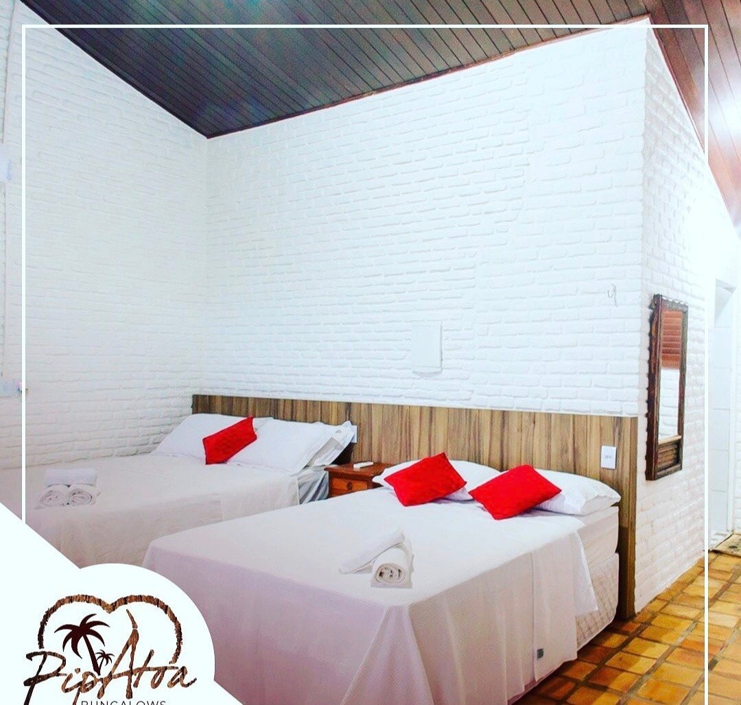 Os nossos quartos duplos acomodam 2 pessoas (adultos ou crianças) e possuem varanda com rede e vista do jardim e da piscina, frigobar, cofre, flat TV, ar-condicionado, ventilador de teto, prateleiras, cabides e um banheiro confortável com chuveiro elétrico. Área do quarto: 25 m².