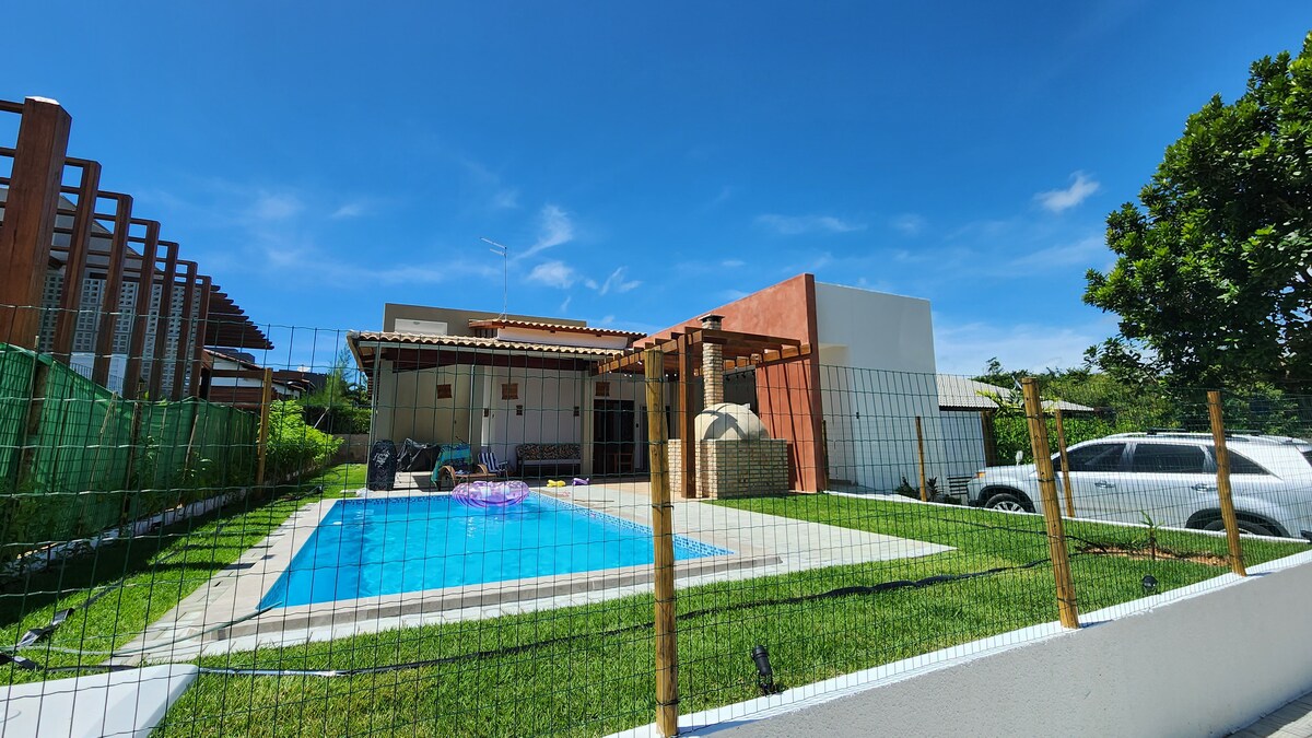 Buscando paz e tranquilidade? Uma casa ampla feita para famílias, na segurança do complexo Pipa Natureza, com varanda, piscina e churrasqueira. São 2 suítes e 1 quarto espaçosos, climatizados e com camas super confortáveis. A 800 metros da Praia do Madeiro - considerada uma das melhores do mundo - com acesso a pé por uma trilha de 20 minutos pela mata atlântica nativa ou 3 minutos de carro. Fica a 3km do centro de Pipa e 4km de Tibau do Sul.