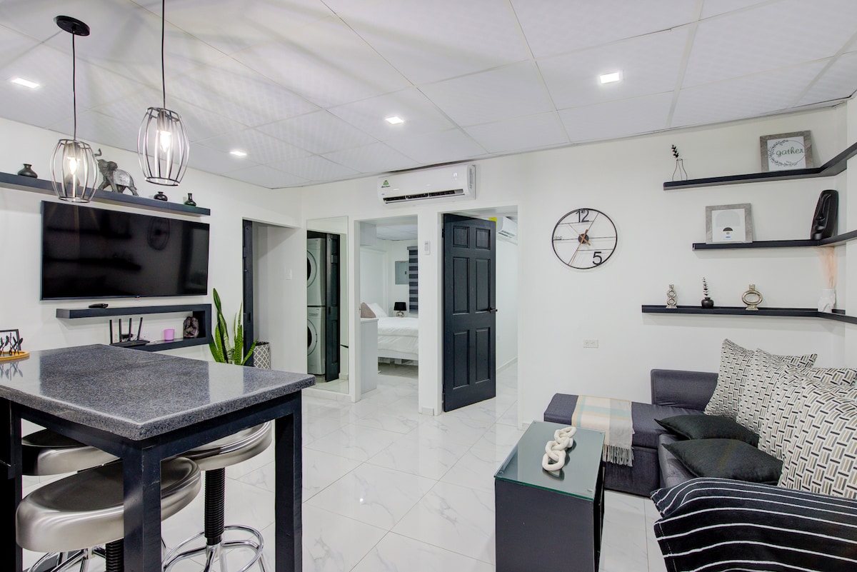 This airbnb is the ultimate blend of modern comfort and island charm, where every stay feels like a 5-star escape. Our centrally located oasis offers access to vibrant restaurants, while providing a serene retreat away from the bustling capital. With a stunning interior and top-notch amenities, you'll find yourself immersed in luxury & relaxation. Join the ranks of our delighted guests who've rated us 5 stars, and discover a hidden paradise that's far beyond the ordinary