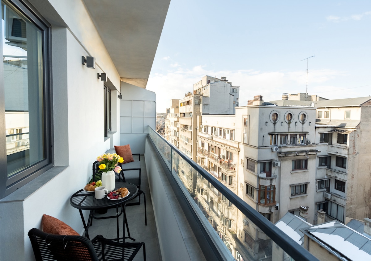 令人惊叹的露台明亮单间公寓| Amzei Square