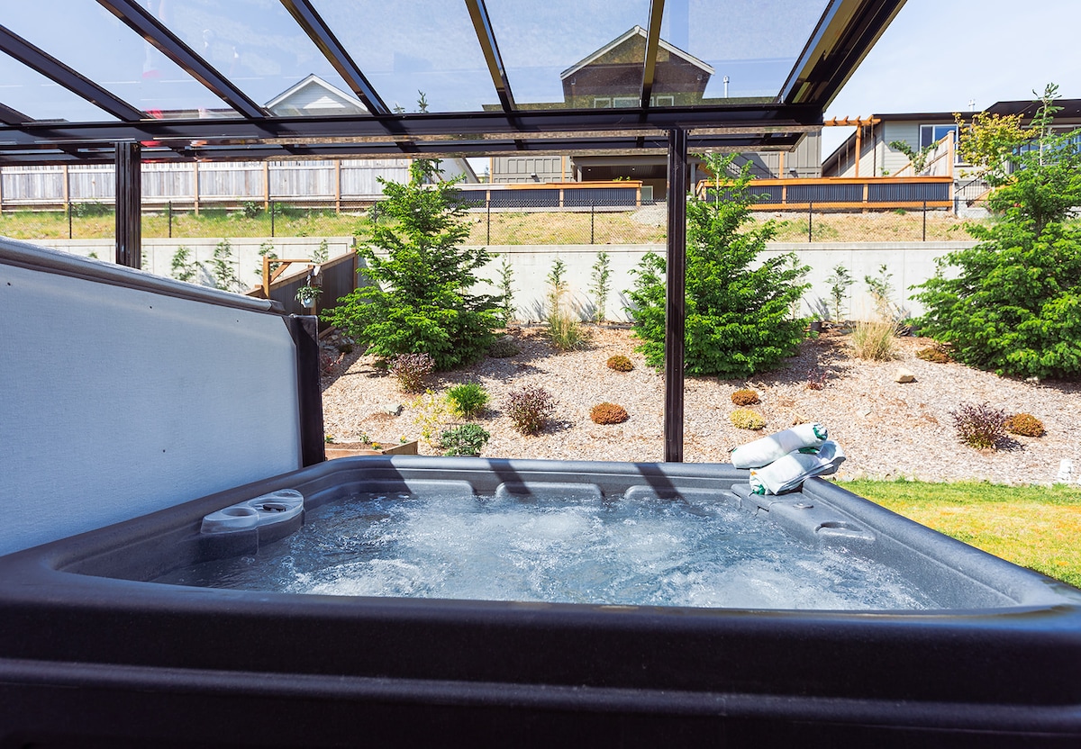 Professionally Soundproofed, 2-Story Suite w/ High Ceiling, Original Art, & Nespresso. ☞ Heated bathroom tile floors ☞ Dedicated deck & hot tub for guests ☞ 5 min walk to beach ☞ Ocean views ☞ Washer & dryer (full-sized and free) ☞ Roadside parking with signage ☞ Free high speed WiFi 5 mins → Downtown (dining, shopping, etc.) 1-7 mins → Multiple different beaches to enjoy "It felt as though we were staying at a fabulous hotel, owned by new friends!.” -Paige. (Vancouver, Canada)