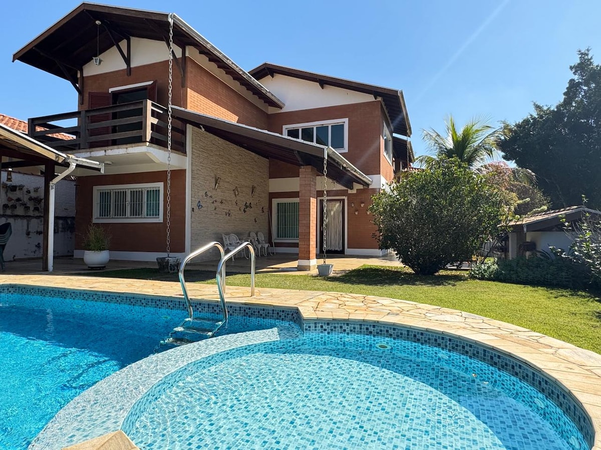 Casa muito confortável com ar condicionado em todos os quartos, muito bem localizada no condomínio do Thermas de São Pedro, 5 minutos a pé até o parque. Piscina com jacuzzi com hidromassagem. Espaço amplo pra churrasco. Aceitamos apenas animais de pequeno porte (favor incluir no ato da reserva) Obs: Nao disponibiliz roupas de cama e nem banho Há disponível travesseiros e mantas de microfibra. Podemos flexibilizar check in e check out mediante disponib.