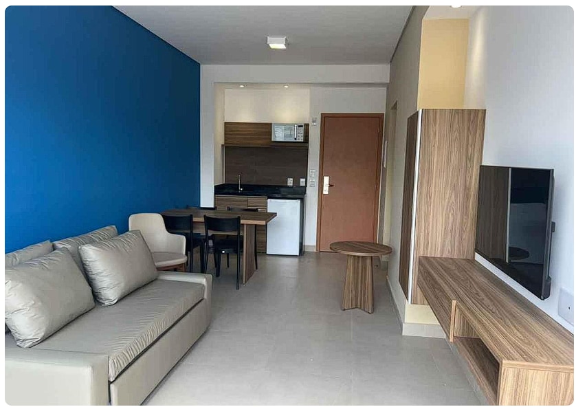A suite é ampla e confortável, sala com sofá cama, 1 quarto com cama de casal e bicama de solteiro, banheiro, cozinha tipo americana, frigobar, microondas, ar condicionado, tv a cabo e wi-fi gratuito. O São Pedro Thermas Resort proporciona uma experiência de lazer completa, equipe de recreação, piscinas de águas quentes e frias, brinquedos aquáticos, playground, brinquedoteca, cinema, espaço teen e academia.