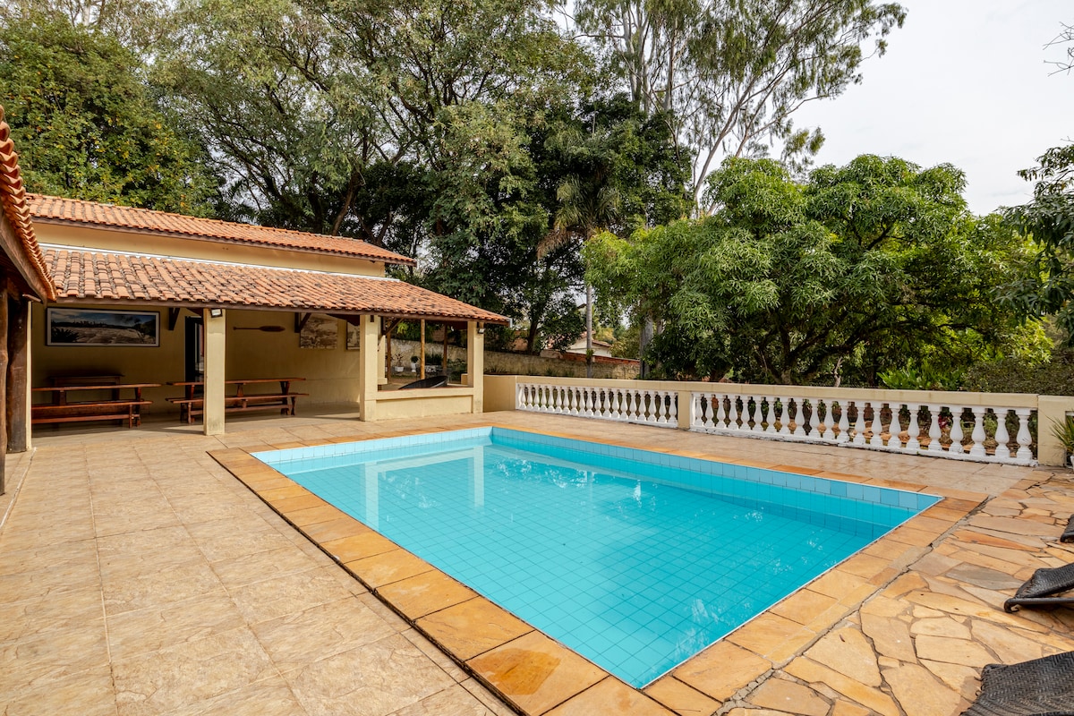 PACOTE NATAL DISPONÍVEL Casa com padrão de conforto e estética que agradam pessoas mais exigentes, lareira finlandesa ao centro da sala de estar e de jantar, ambiente acolhedor e seguro com grades e alarmes, roupas de cama super confort e cozinhas completas, só chegar e curtir! Área externa p muito lazer: piscina e churrasqueira enormes; salão de festas; cozinha externa completa; forno de pizza; lagoa ornamental; garagem coberta 8 carros; jacuzzi; produtos orgânicos; espaço p PETs som ✔fogueira