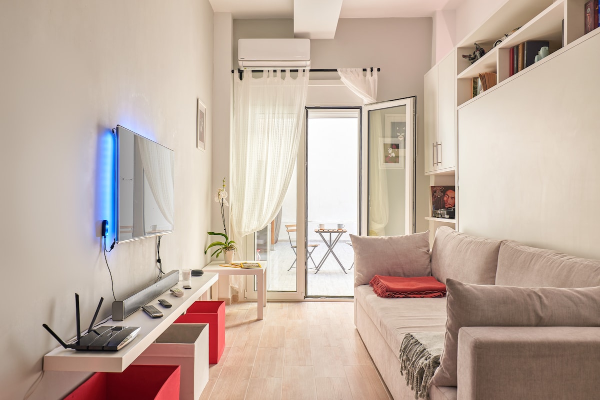 Welcome to our renovated studio apartment! Our apartment is equipped with many cool amenities like high speed fiber internet 200mbps, smart devices, game consoles, Google Voice assistant, a 55" Samsung 4K TV and a sound system with a record player just to name a few. It is located very close (5 mins walk) to the beach of Freatida and the restaurants and cafes of Marina Zea and is also a short scenic walk to the shopping centre of a Pireas and the metro station.