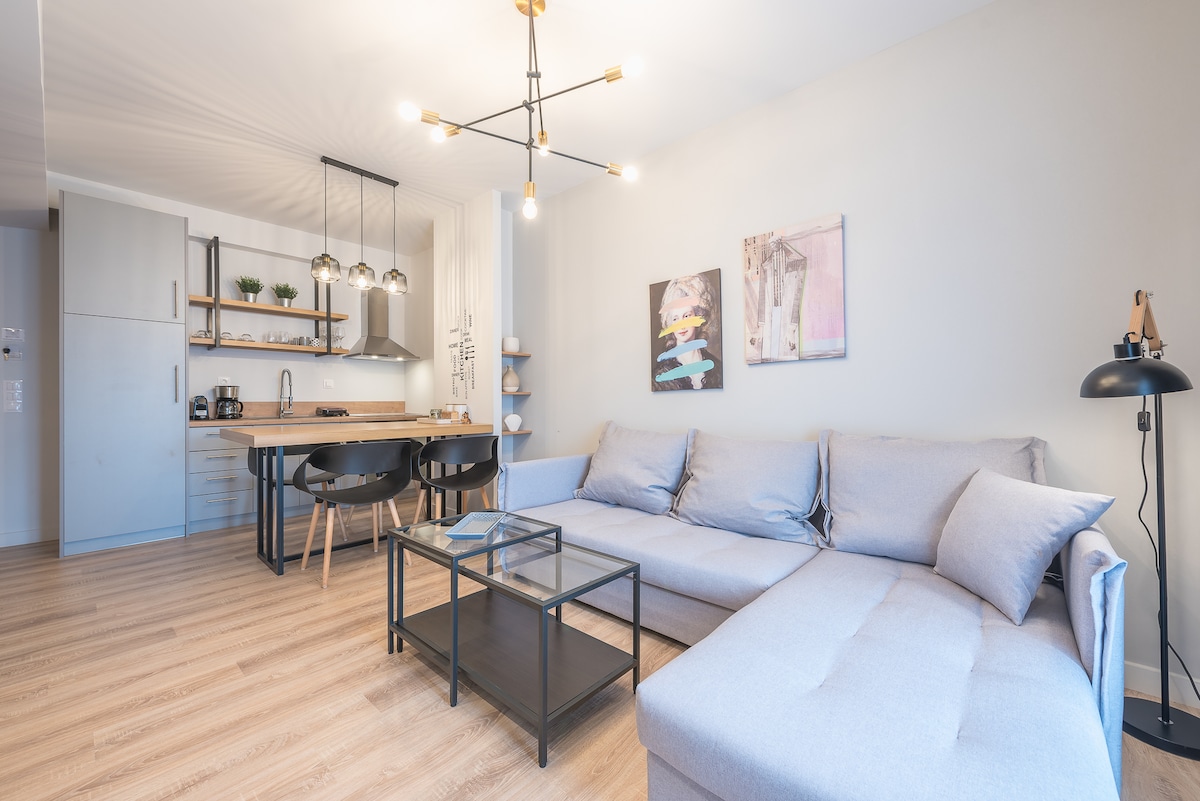 Stylish, spacious (50 sq.m.) one-bedroom ground floor apartment, newly built in 2022. Decorated with every attention to detail, the space aims at providing an enjoyable guest experience. Ideal for couples or families, located at a peaceful part of Piraeus, yet just 5 minutes away from the port by car. This is the place to be either for one night before catching a boat to the Greek islands or for longer stays, since it is fully equipped and the kitchen is suitable for meal preparation.