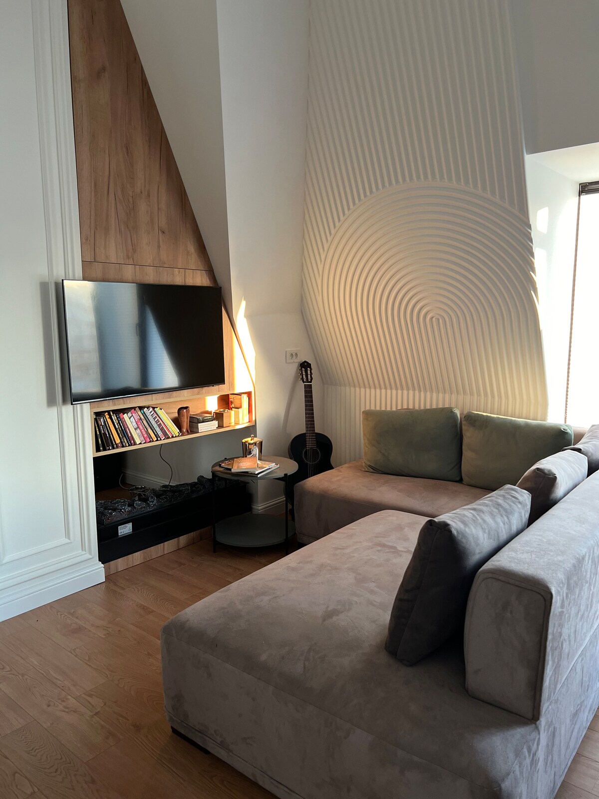 This unique apartment has its own style and atmosphere. Stunning views of the sea, forest park and city from panoramic windows..Mirrors reflecting the bed area and sea view. A closed residential complex in a quiet area of the capital. On the territory there are supermarkets, a premium beauty salon, the city's best bakery AZZA, a dry cleaner, and pharmacies. A bus stop is 100 meters from the complex, and the metro is within a 3 km radius. Both city center and seaside are within a short drive.