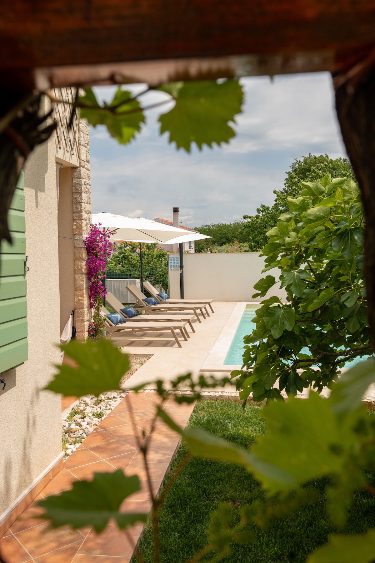 房子带大院子和游泳池,具有伊斯特拉精神