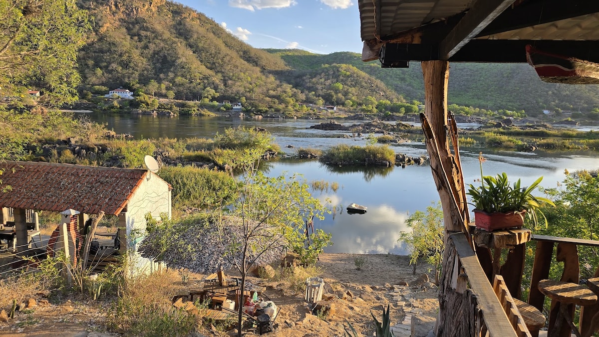 CASA DO RIO - Um refúgio para os dias de Sol, com muito conforto e diversão às margens do Velho Chico e pertinho da cidade “Caninde-Se e Piranhas Al” Venha aproveitar com a sua família e amigos. 🔷Capacidade p até 10 pessoas 🔷2/4 de casal (cada quarto com 2 camas de casal e 1 colchão de solteiro) 🔷2 banheiros 🔷Ar condicionado 🔷redes 🔷cozinha gourmet 🔷Wi-Fi 🔷Tv 🔷PRAINHA PRIVATIVA 🔷guarda sol e mesas para a prainha.