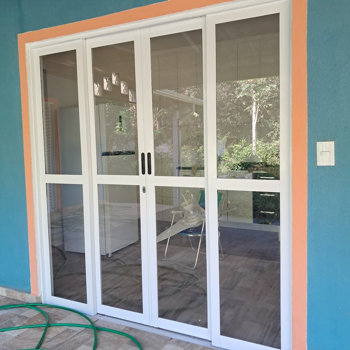 Aproveitar momentos agradáveis com sua família. Perfeita para amantes da natureza. Deliciosa área de descanso. Ampla área externa com gramado, piscina, arvores, redario, balanços. Área de lazer de 100 m2 com churrasqueira e cozinha completa. Internet rápida e de qualidade. Há câmera no estacionamento.