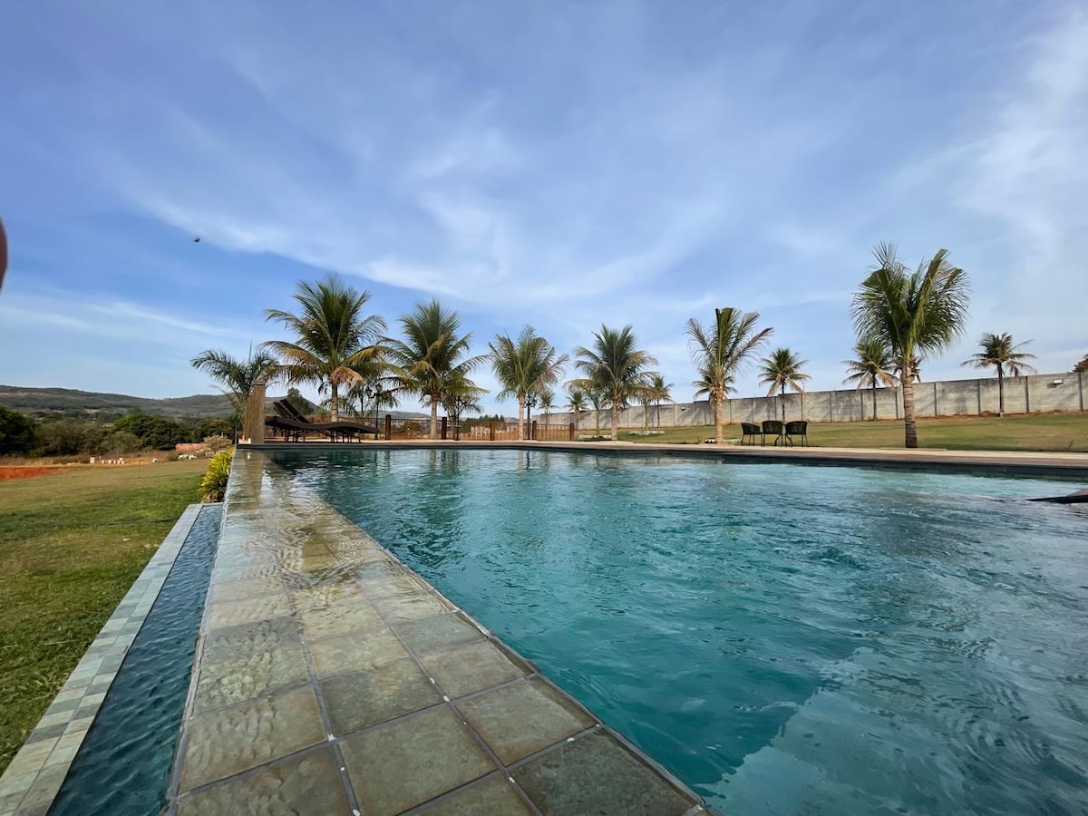 Um lugar único, moderno e requintado. Oferece conforto em meio à uma vista deslumbrante. Espelhando a serra e céu de Pirenópolis, com muito conforto e um estilo que oferece requinte e tranquilidade. Localizado na zona rural de Pirenopolis, aproximadamente 25 minutos do centro. O local oferece: - Piscina com borda Infinita - Banheira de Hidromassagem - Cozinha moderna - Área Gourmet - Rede suspensa com vista panorâmica - Deck - Rio, 5 minutos caminhando - Trilhas …