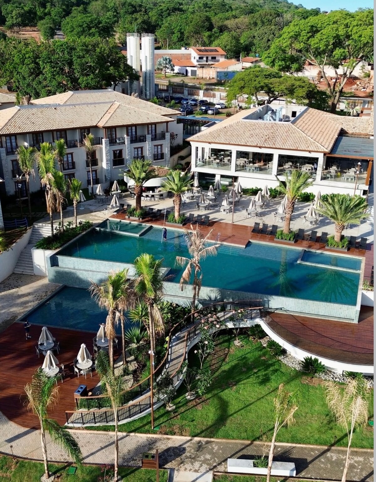 O resort oferece lazer completo e serviços exclusivos: SPA, academia moderna, restaurante, bar, serviços de room service, conveniência, brinquedoteca, salão de jogos, piscina adulto e infantil, quadras esportivas, playground e dog play com cuidado especial para pets Além disso,conta com sauna e banheira de hidromassagem, recepção 24 h, estacionamento grátis, e café da manhã à la carte Situado em Pirenópolis/GO, o empreendimento está cercado por natureza exuberante e charme colonial.