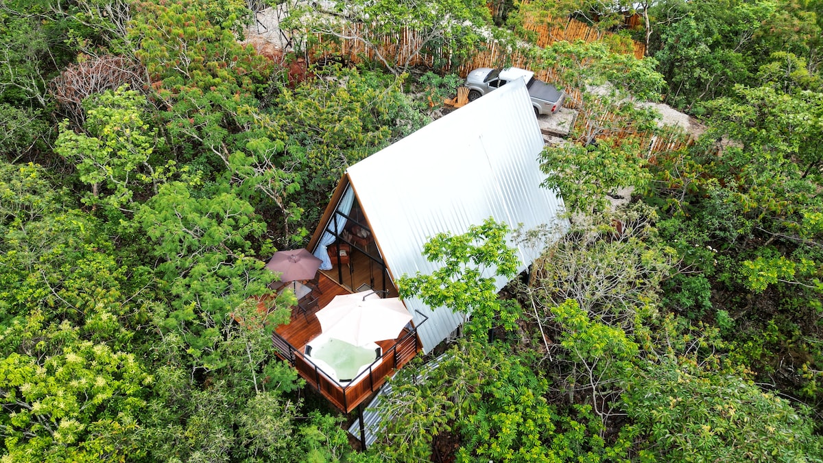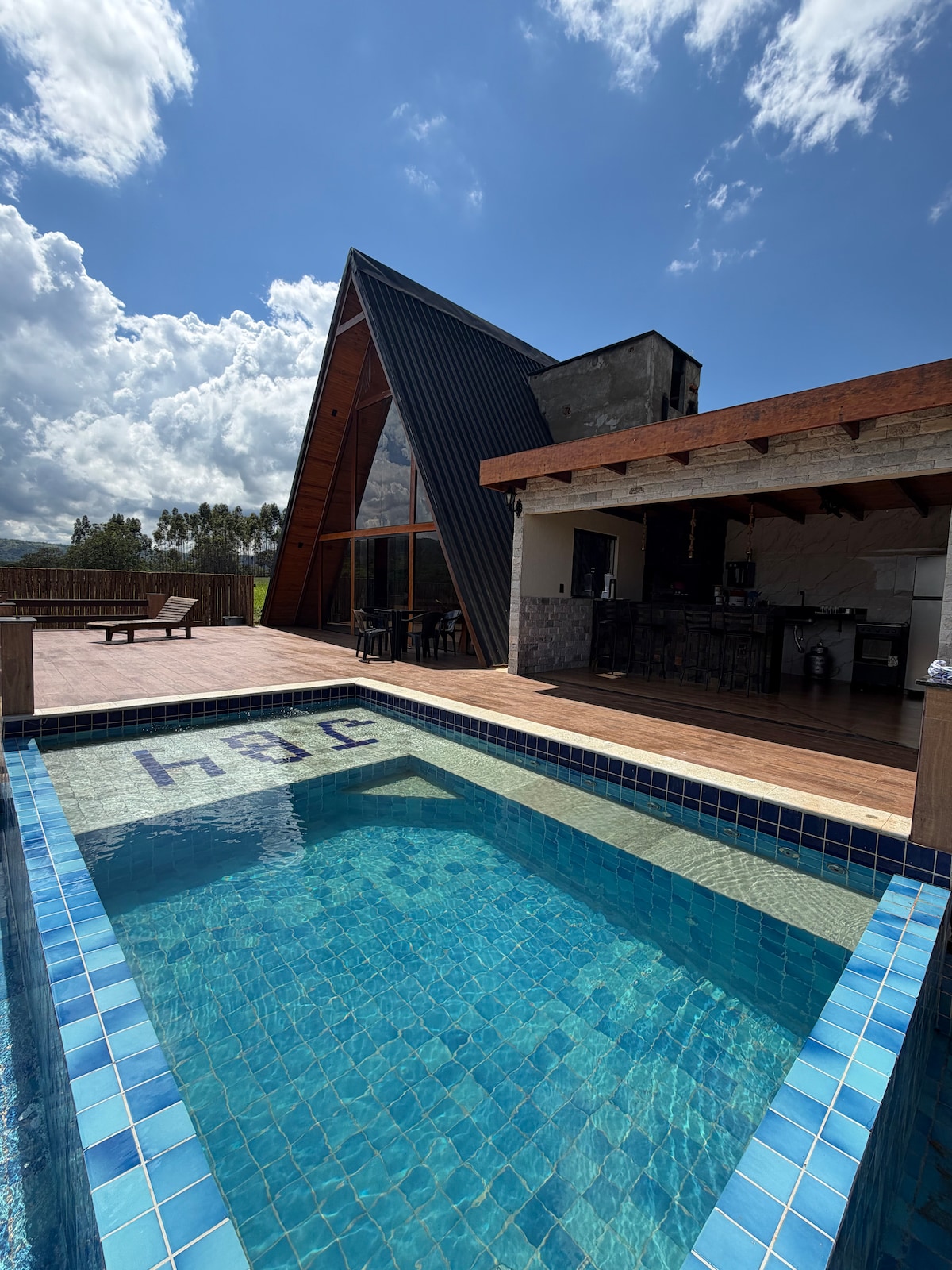 Cabana A-frame exclusiva com ofurô, lareira e uma vista inesquecível. A apenas 10 minutos do centro histórico de Pirenópolis, em uma propriedade privativa cercada de natureza. Relaxe no ofurô aquecido ao ar livre, contemple o pôr do sol no deck panorâmico ou aqueça as noites frias na lareira. Fachada de vidro, design moderno e conforto máximo para casais ou famílias que buscam momentos únicos.