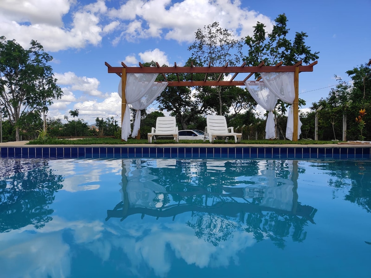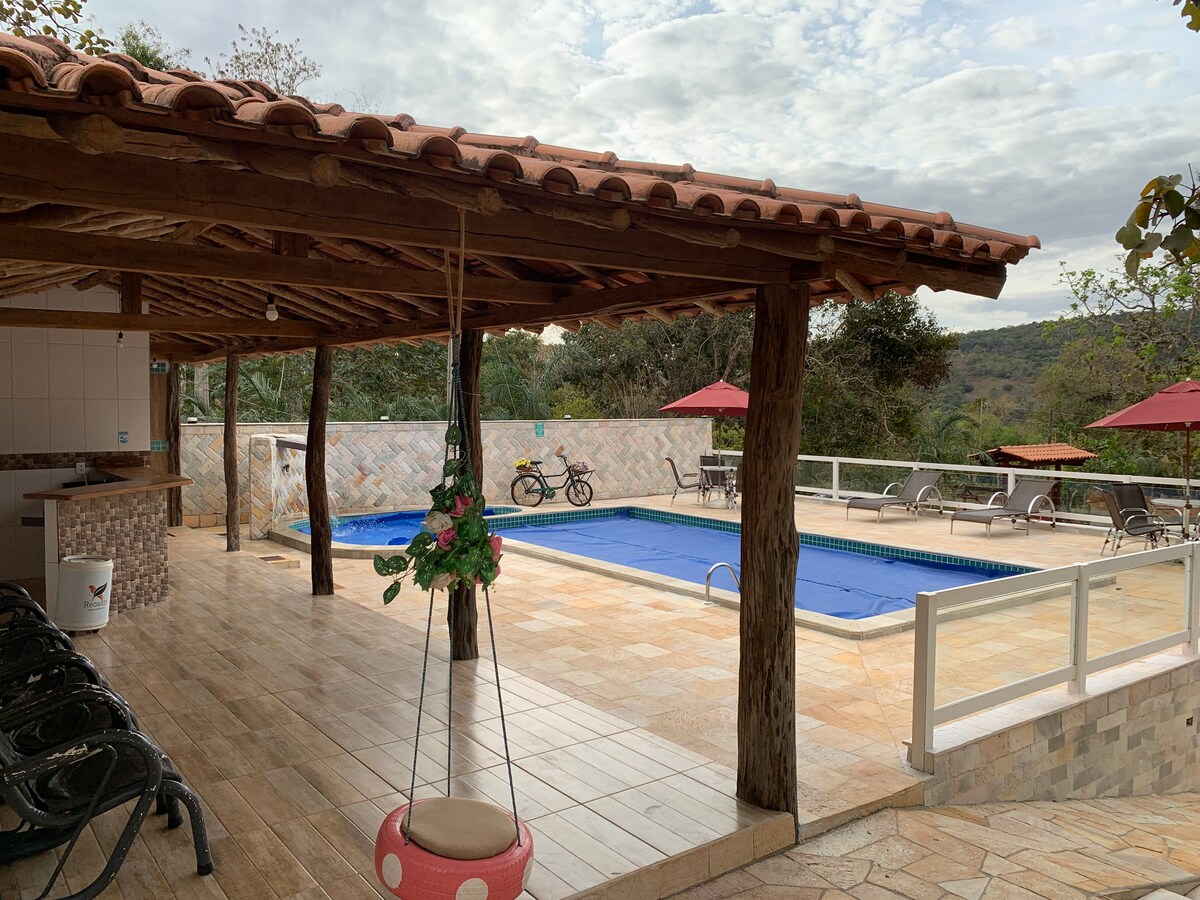 Um ótimo lugar para quem procura paz e sossego pois estamos localizados a apenas 6km(apenas 200mts estrada de chão) do centro Histórico de Pirenópolis. -Casa com duas Suítes - Ar condicionado quartos -Wi-Fi -Cozinha Gourmet completa - espaço para recreação ( futebol/vôlei ) -Piscina aquecimento solar - espaço para fogueira - Tv (quartos/área de lazer) - redes p/ descanso -Lugar com bastante espaço e privacidade -localização permite caminhadas em meio à natureza - Aceitamos Pets - Jogos