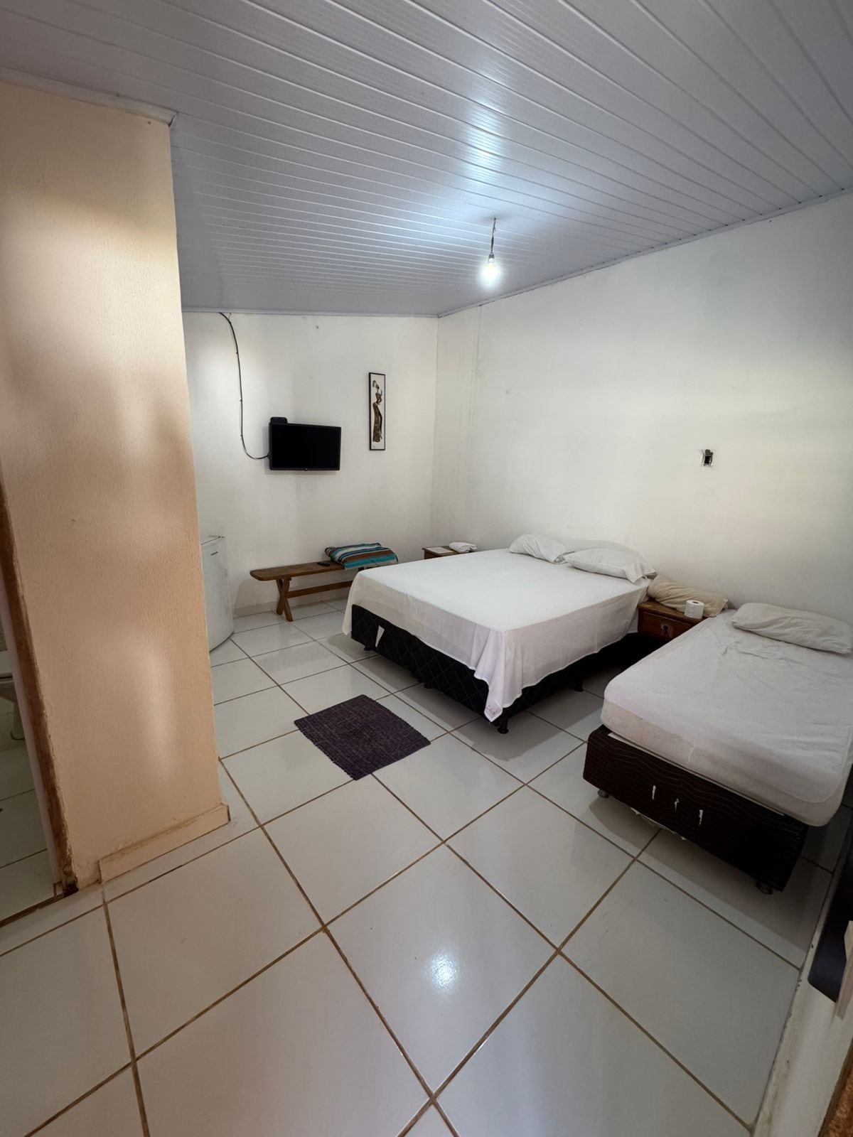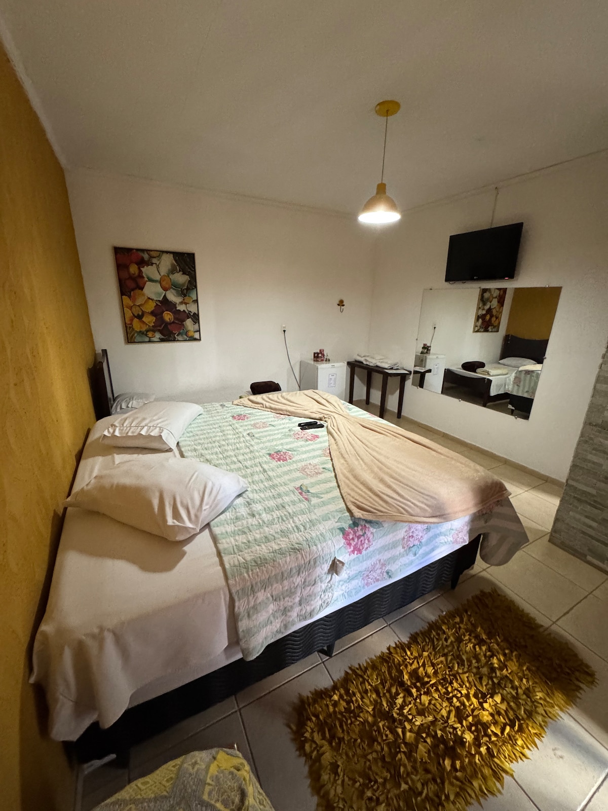 Relaxe com toda a família nesta acomodação tranquila.casa simples com 4 quartos sendo dois dentro da casa sendo sala e cozinha americana com 1 banheiro dentro área em volta da casa fora da casa tem os outros 2 quartos sendo os 2 suíte piscina aquecida solar garagem pra 3 carros casa setor chácara sendo 7 km do centro da cidade 5 km de asfalto 2 de chão