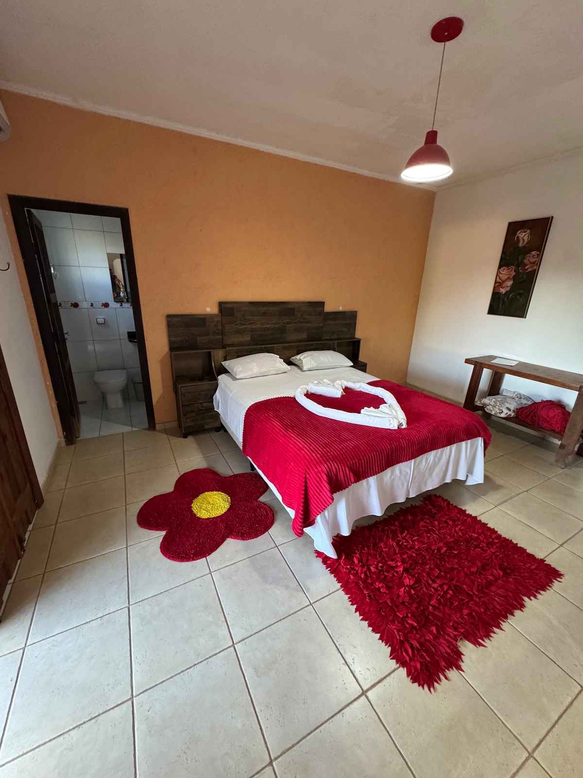 Rancho do J localizado a 4 km de Pirenópolis um lugar aconchegante para vc e sua família passar o final de semana, férias lugar tranquilo e muito verde, oferecemos , Wifi, piscina com aquecimento solar, um área gourmet bem equipada com mesa de bilhar, jogos de cadeira confortável, churrasqueira, cervejeira. Oferecemos 3 suítes e acomodamos em cama 13 pessoas.deitados, temos uma quadra de vôlei.