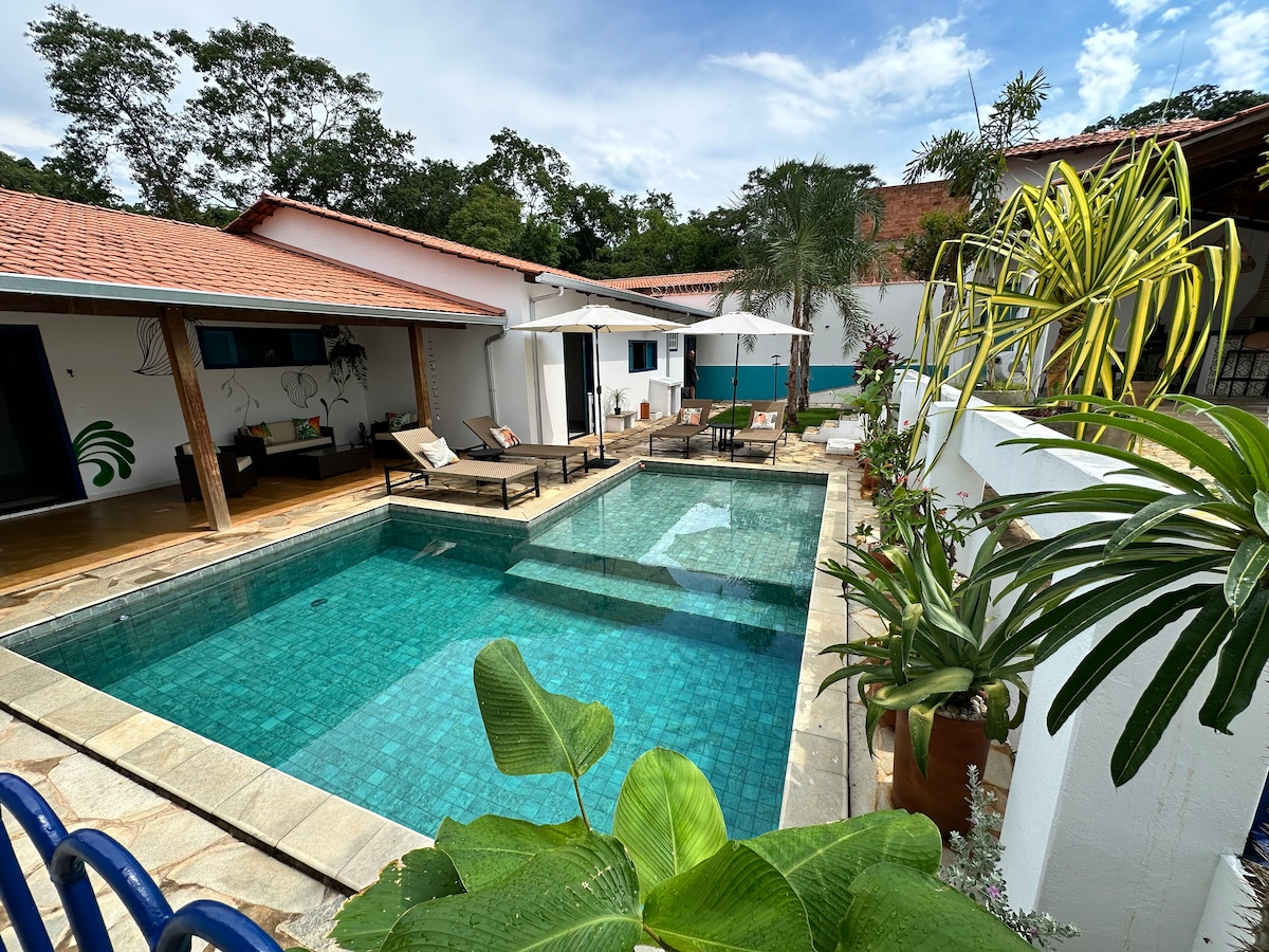 Relaxe com toda a sua família numa casa aconchegante e tranquila. A 3km da cidade de Pirenópolis. Conta com todos os utensílios de cozinha, 4 quartos com ar condicionado e 3 com suítes. Piscina com aquecimento e hidromassagem.