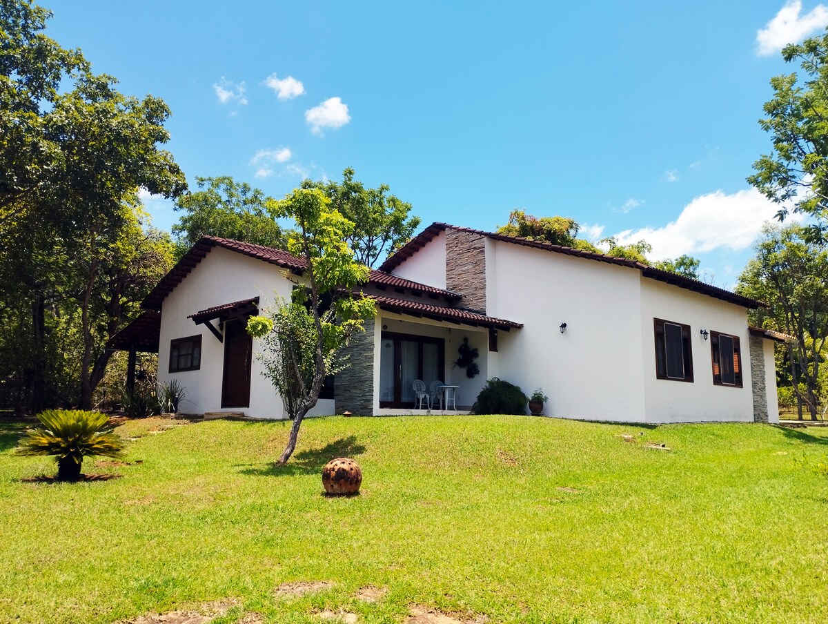 Bem-vindo ao seu Oásis Exclusivo - Refúgio de Luxo em Pirenópolis! São 05 suítes aconchegantes, todas com ar-condicionado, 07 banheiros, cozinha totalmente equipada com área para refeições e forno, sala de estar com TV a cabo e tela plana, sala de jantar com mesa para 8 pessoas. Varanda gourmet térrea que funciona como área para refeições ao ar livre, com churrasqueira integrada. Área de lazer com piscina privativa c/ hidromassagem acoplada. E um belo condomínio que circunda a casa.