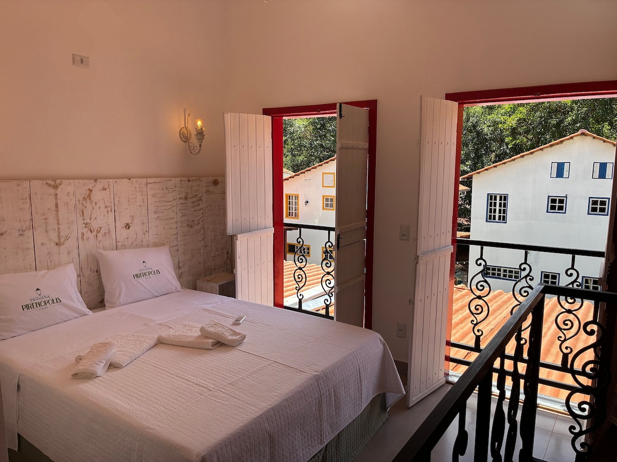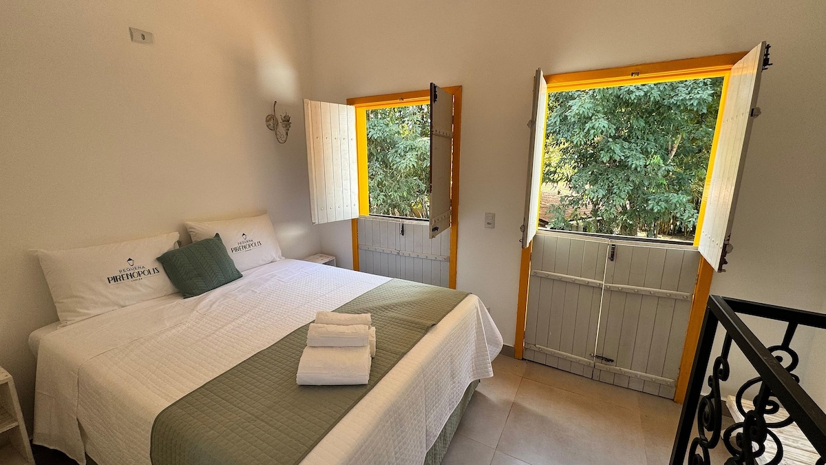 A taxa de serviço fica por nossa conta! Espaço de autocuidado, paz e relax preparado com muito carinho para receber você! Loft ideal para 2 pessoas: - quarto/cama queen, - ar-condicionado, - cozinha completa, - 1 banheiro, - hidromassagem com ducha externa. - disponibilizamos roupão a partir de duas diárias. Área comum: - estacionamento, - área de lazer, - piscina semi-aquecida, - churrasqueira (mediante taxa de uso). A 1km do centro de Pirenópolis.