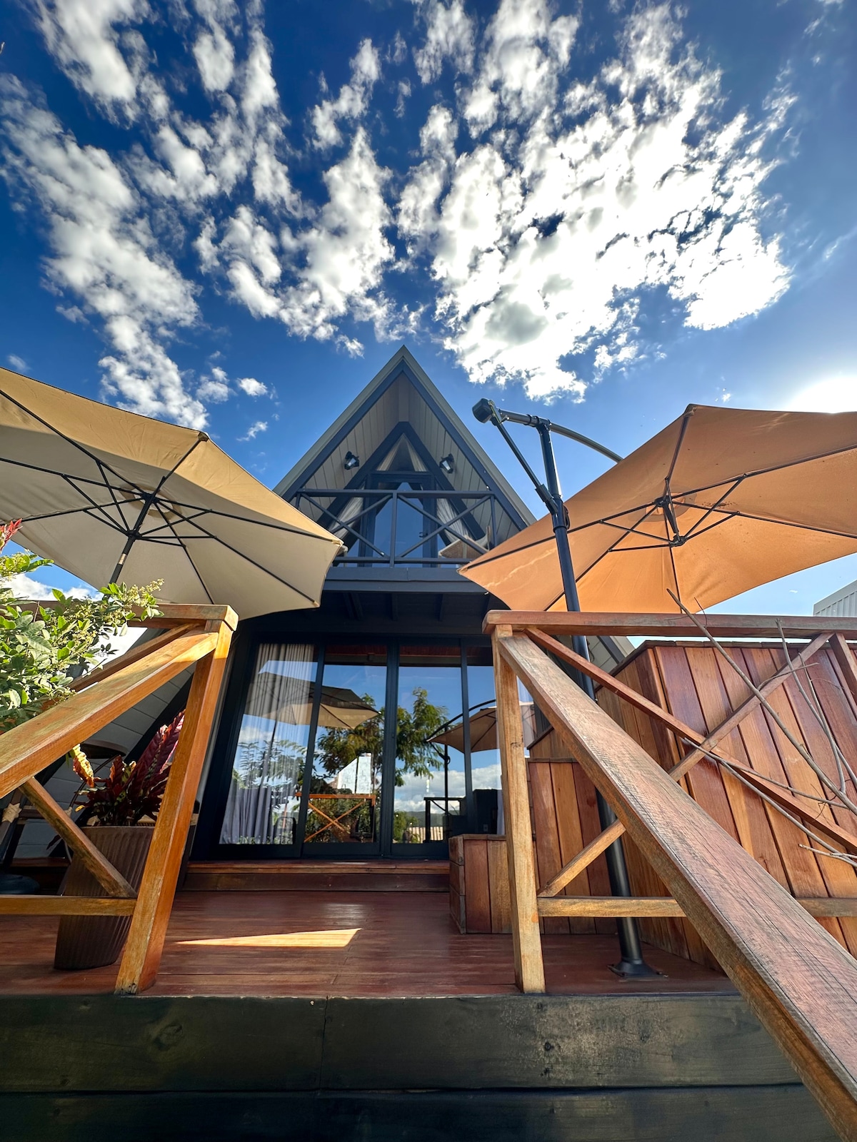 Cabana A-frame exclusiva com ofurô, lareira e uma vista inesquecível. A apenas 10 minutos do centro histórico de Pirenópolis, em uma propriedade privativa cercada de natureza. Relaxe no ofurô aquecido ao ar livre, contemple o pôr do sol no deck panorâmico ou aqueça as noites frias na lareira. Fachada de vidro, design moderno e conforto máximo para casais ou famílias que buscam momentos únicos.