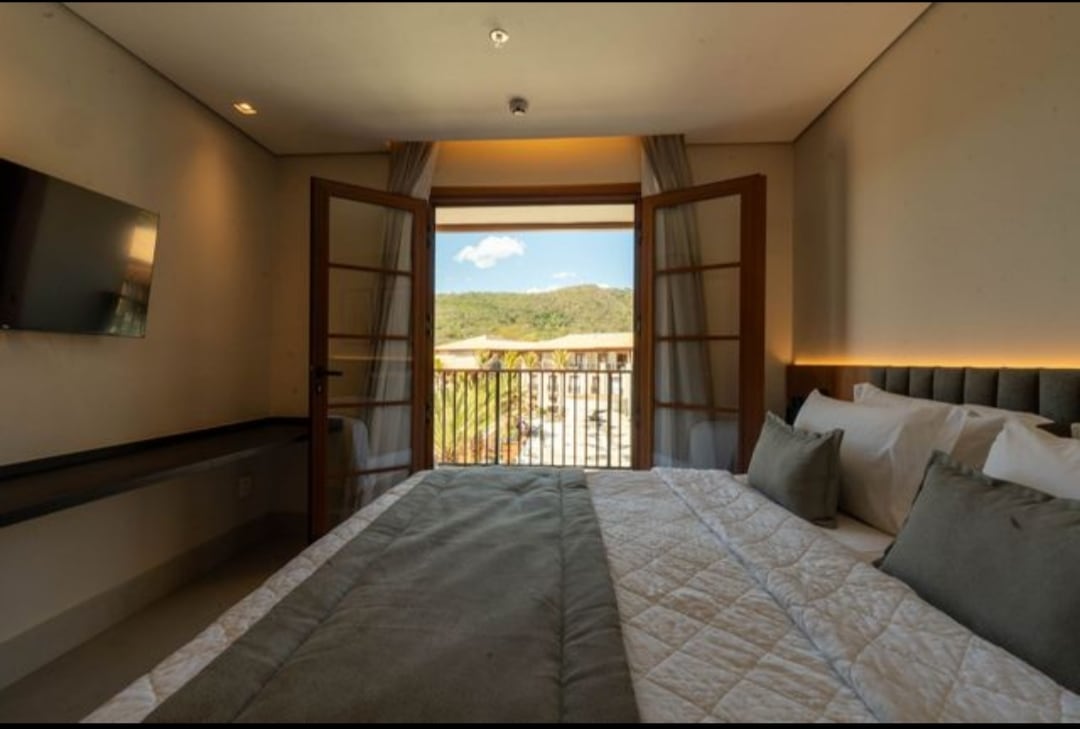 Apartamento de 2 quartos ideal para famílias em resort completo em Pirenópolis. Ambiente seguro e acolhedor, com piscinas aquecidas, áreas verdes, restaurante, spa e lazer para todas as idades. O apartamento oferece serviço de hotelaria, com roupas de cama, toalhas e arrumação diária. Em localização privilegiada, permita-se deixar o carro no estacionamento e explorar o charmoso centro histórico a pé.