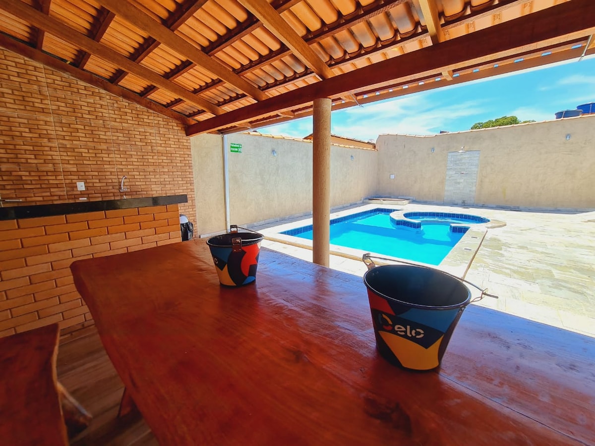 Relaxe e viva uma experiência tranquila e aconchegante! Sobrado com três suítes. Suíte 1 superior: cama de casal king, ar condicionado, televisão e sacada. Suíte 2 superior: cama de casal queen, ar condicionado. Suíte 3 térreo: cama de casal queen, cama auxiliar e ar condicionado. Sala televisão, com sofá cama e Wi Fy. Cozinha americana equipada com utensílios e eletrodomésticos. Área de lazer com banheiro, churrasqueira, piscina (10mts2) com aquecimento solar, conjunto de mesas e cadeiras