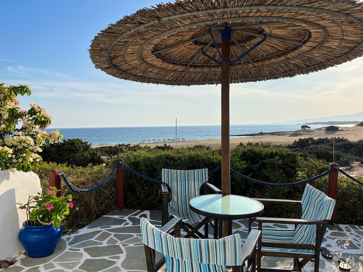 Welcome to paradise! This stunning room located in Pyrgaki, Naxos is the perfect place for a relaxing getaway. With breathtaking views of the Aegean Sea just outside your window, you can enjoy the sound of the waves crashing on the shore and the sun setting into the horizon. The property is just a few steps away from the beach and has a serene atmosphere that will make your visit unforgettable. Blue Island is conveniently located just 30 minutes away from the port (Chora) and airport.