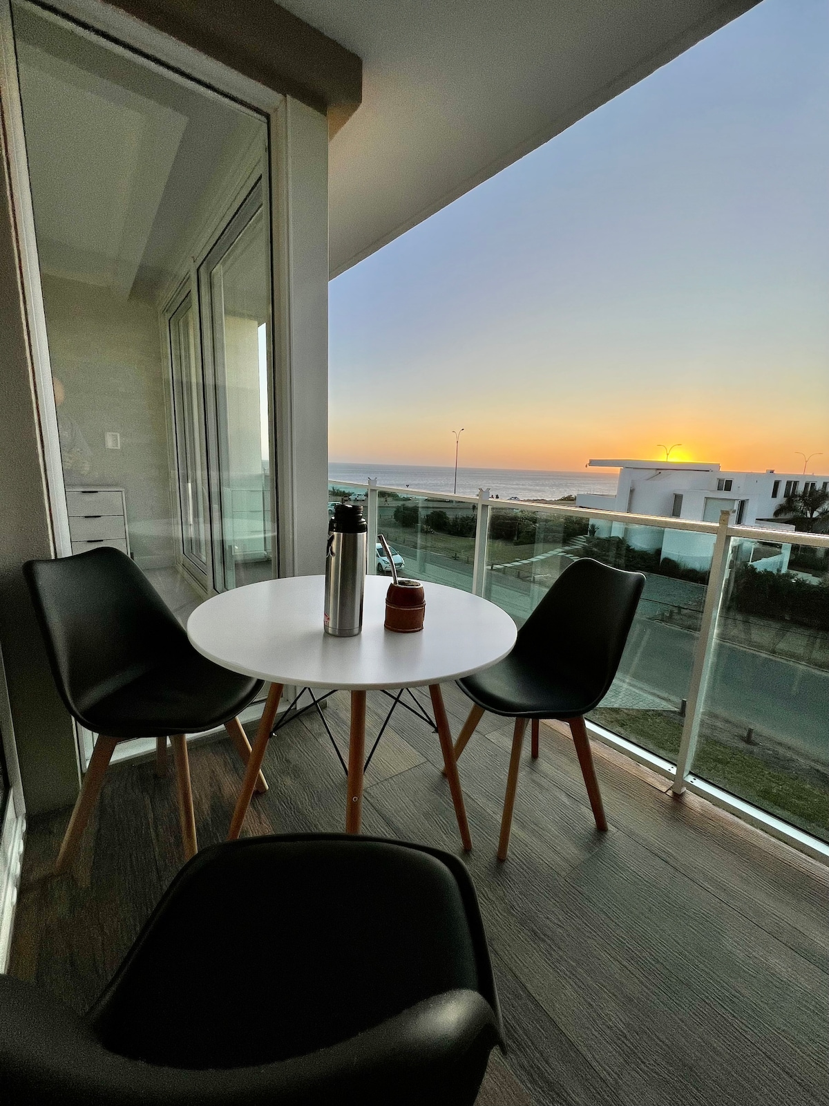 Apto reciclado frente a rambla en PLENO CENTRO! Posee un dormitorio con cama doble y sofá cama en el living. Posibilidad de agregar cuna. Aire acondicionado en living. Es necesario subir escaleras para acceder. Todos los servicios a 1 sola cuadra: supermercado, cambio, farmacia, dentista,red de cobranzas, tiendas,estación de servicio, pub, cyber, restaurante,cafetería y heladeria, banco y por supuesto nuestra hermosa rambla! Cuenta con vajilla, Chromecast y directv prepago. Leer evaluaciones :)