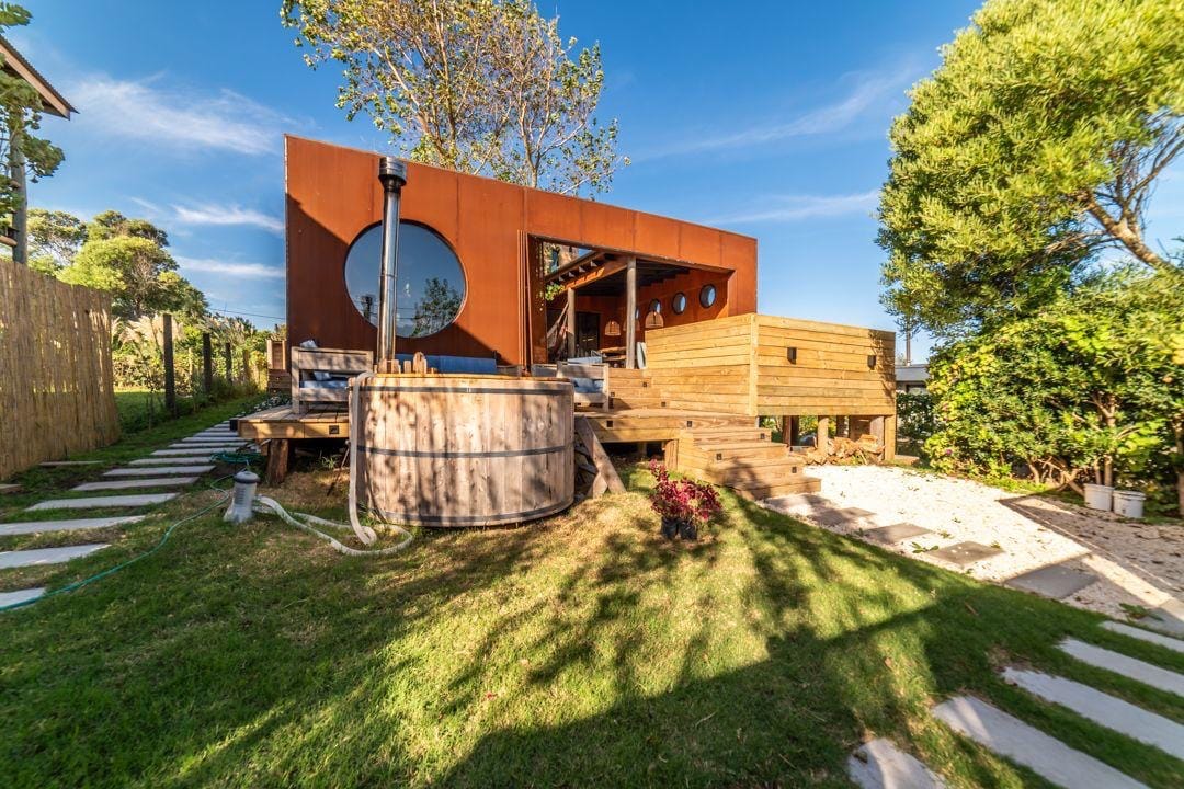 Designer beachfront cabin between Piriápolis and Punta del Este. Wake up to the sound of the ocean and step straight onto the sand. Perfect for a romantic or adventure escape. Cozy wood-burning stove, bonfire under the stars, and a fully equipped kitchen. Includes linens, towels, and amenities. A peaceful seaside retreat to relax and reconnect with nature. Near the cabin there's an abandoned complex, but there's a caretaker living there and it's very safe.