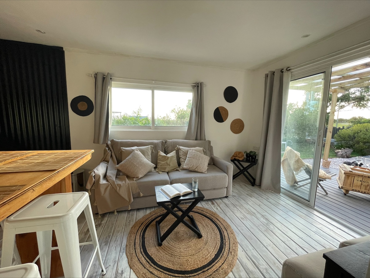 Disfrutá de una experiencia única en esta cálida tiny house, ubicada en el tranquilo balneario Sauce de Portezuelo La casa combina funcionalidad y estética, con detalles simples y acogedores que invitan a bajar el ritmo y reconectar rodeado de bosques arbolados y muy cerca del mar Pensada con todas las comodidades para disfrutar del entorno, la naturaleza y La Paz sin necesidad de moverte. Atractivos cercanos, como el cerro pan de azúcar, nueva carrara, lussich y bodegas están pocos minutos