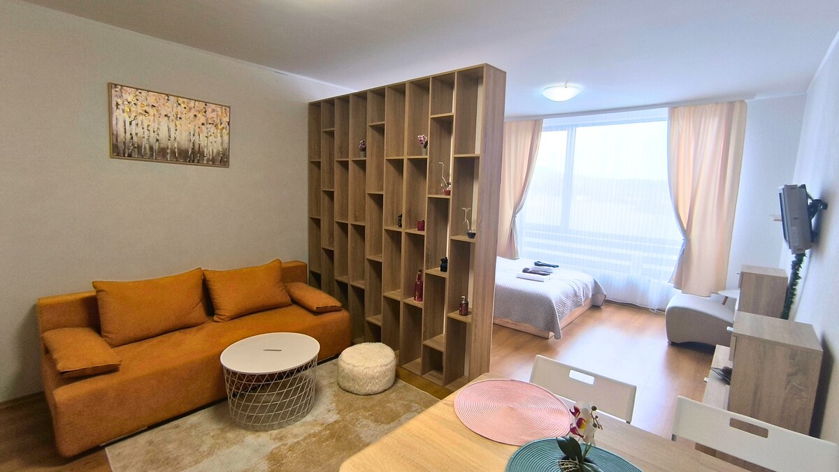 "Комфортно студио под наем в Банско - идеално за двойки. С модерно обзавеждане, тераса с панорамна гледка към планината и южно изложение. Уютно и топло, разположено в тих район, но същевременно близо до всички удобства, ресторанти и магазини. Перфектно както за ски ваканция, така и за лятна почивка в планината. Напълно оборудвано за комфортен престой през всички сезони, паркомясто включено в цената. Възможност за сезонен или целогодишен наем."