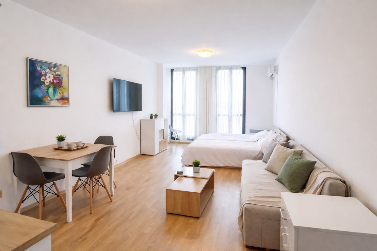 Hi, I love traveling with my family and I use airbnb myself. There is a comfortable apartment for living with kids, as well as for digital nomads (perfect internet included). Beautiful new apartment in the hotel SPA Resort St Ivan Rilski, free shuttle to ski lift, or 10-minute walk. The stylish apartment consists of two bedrooms, 2 work places, a large kitchen&living room, two large balconies and a cosy bathroom. 1 parking space is included!