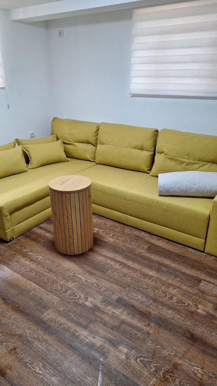 Nestled in the tranquil upper part of Bansko, close to the forests, the apartment offers a peaceful escape from the town (and smog in winter). The living room has stunning views of the valley and Rhodope mountains, complemented by designer furniture and a small desk with screen and office chair. In the bedroom, a boxspring bed with a premium mattress and down bedding promises a restful sleep. The kitchen is equipped with a dish washer, tableware and cooking tools, alongside a washing machine.