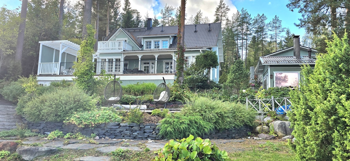 Villa Nurmi on uusi hyvin varusteltu huvila Längelmäveden rannalla Kangasalla. Iso yksityinen piha, perinteinen rantasauna ja oma matala hiekkaranta sekä soutuvene käytettävissä. Tervetuloa kokemaan suomalainen järviluonto upeissa puitteissa! Villa Nurmi is a new luxury villa by Lake Längelmävesi at Kangasala. Big private yard, beach and traditional sauna by the lake offer perfect place for relaxation. You are most welcome to experience Finnish lakeland nature in our beautiful villa!