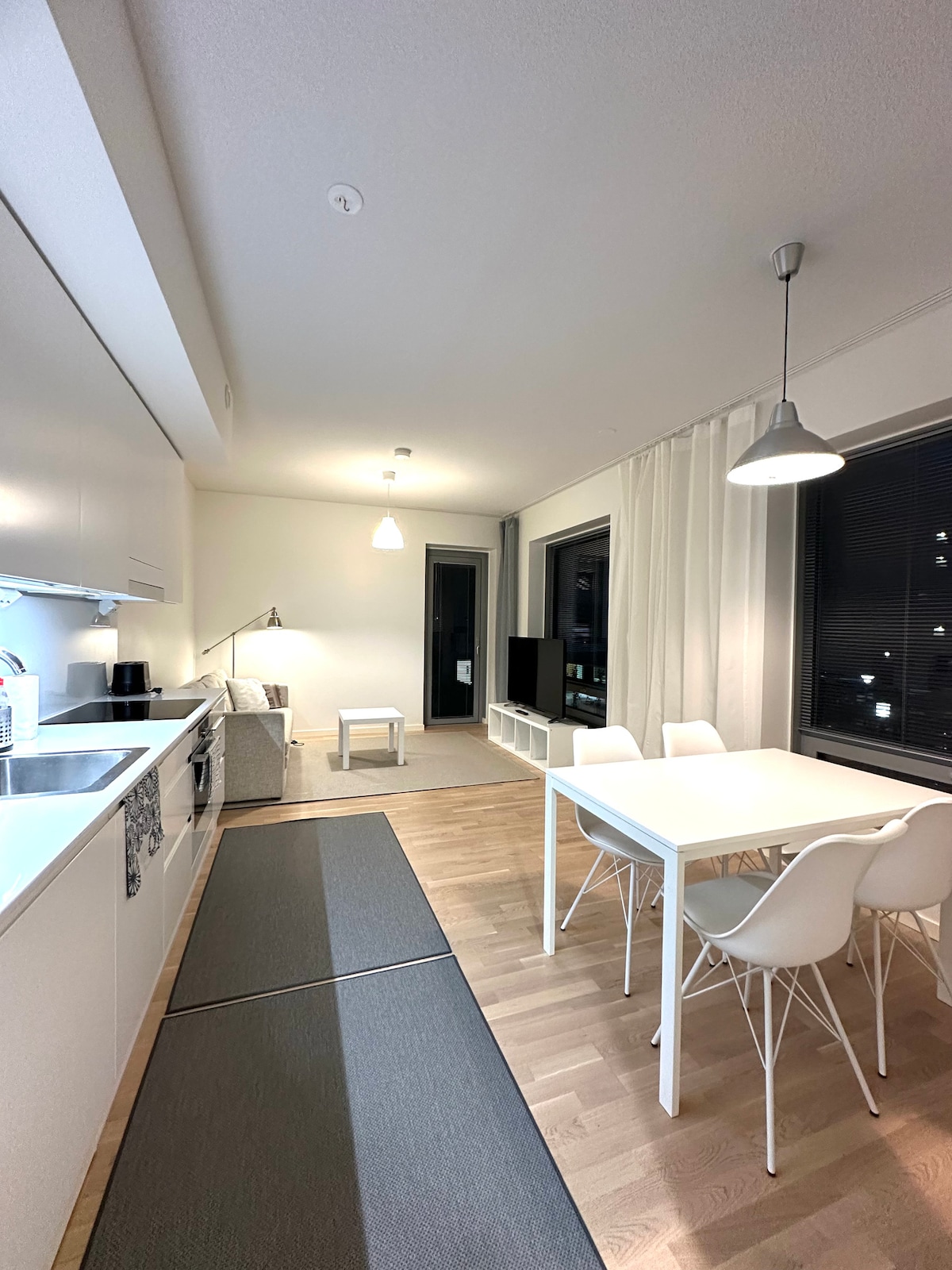 New cozy air-conditioned 74.5 m2 2BR apartment with sauna in Tammela Stadium. With elevator you can access parking hall, supermarket and restaurants. There is 1 free parking spot in the parking hall and public transport is just around the corner. City center is also nearby (1km). The apartment has high-quality materials and equipment, fast Wi-Fi and 65" TV with Netflix, as well as a large balcony with park view. This place is good for business travel or for relaxing break from everyday life.