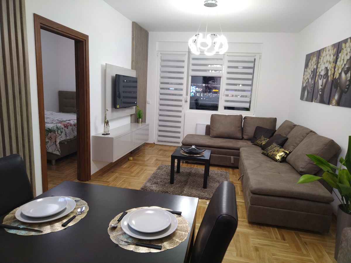Opustite se sa celom porodicom u ovom mirnom smeštaju. Nalazi se u širem centru grada u neposrednoj blizini sportskog centra koji obiluje bogatim sadržajem u kome se mozete opustiti na otvorenom i zatvorenom bazenu, sauni, teretani, Turskom kupatilu. Na raspolaganju su tereni za mali fudbal, veliki fudbal, teniski tereni...u blizini apartmana nalazi se veći broj kafana, kafića i velikih marketa....