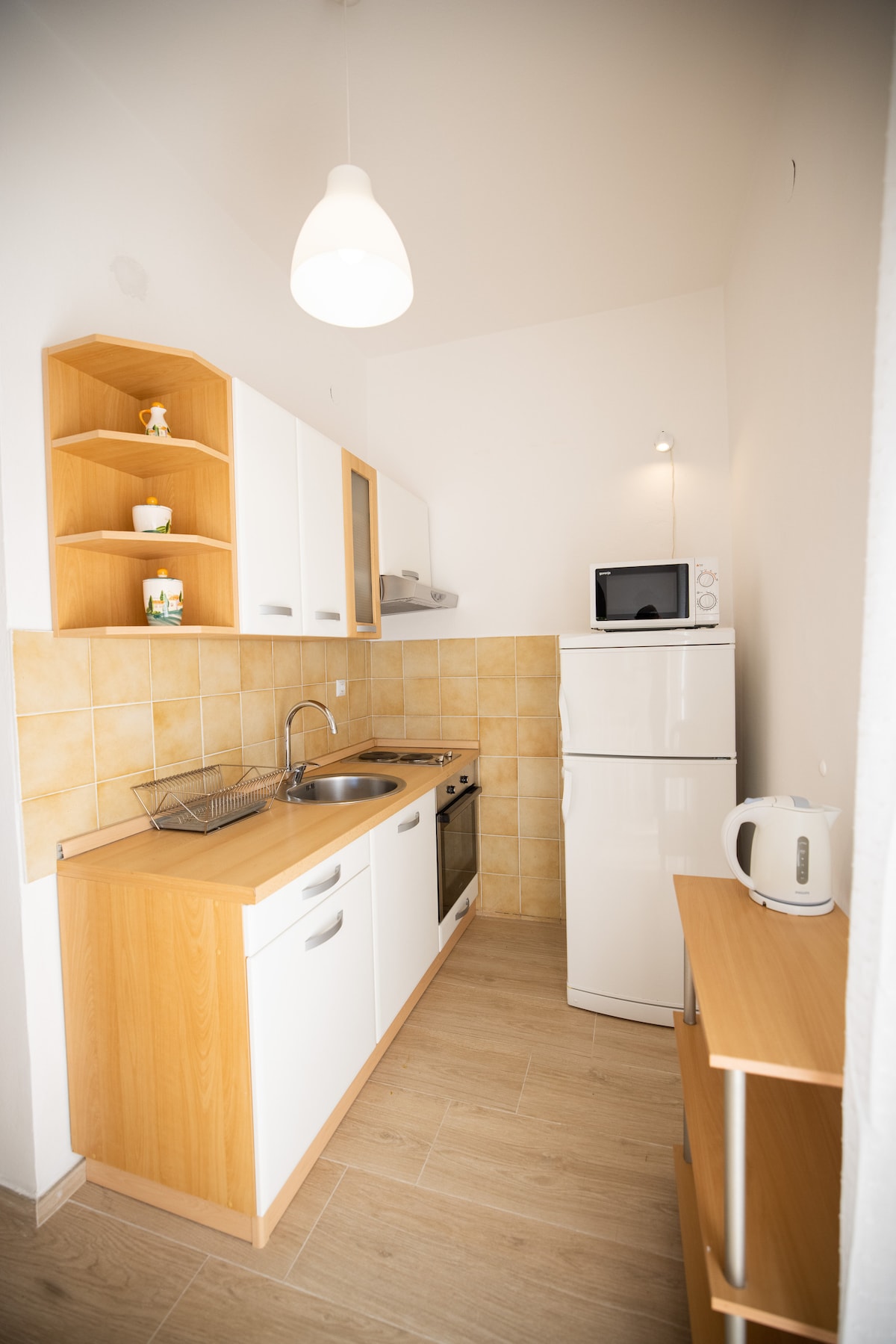 The apartment is situated in the very center of the old historical small town of Pirovac, 10 km distance from popular summer destinations - city of Vodice, Tisno (Garden festival), Murter, Biograd na moru, Šibenik (Terraneo festival). Two beautiful National Parks are approx. 20km away (by car or by boat). The apartment is family friendly,large, spacious, comfortable and (website hidden) has 3 double bed rooms (one has additional bunk bed), kitchen, dining room, 2 bathrooms, 2 terrace and garden. Apartment is completely equipped for everyday life (all kitchen utilities, dishes, linen, wash machine, TV, hair dryer, etc.). It has the special entrance - staircase from where you enter on the big terrace with wonderful view on the city and seaside. From terrace you enter the living&dining room on one side. On the otherside of the terrace you enter in the bedroom. If needed, we can provide a folding Cot for baby. Parking place secured. In the backyard there is also a small barbecue house that you share with other guests in the house. In the walking distance there are grocery shop, market, bakery, butcher shop, hair dresser, tourist info, souvenir shop, cafes and bars, restaurants and beaches (all 2-10 minutes walking distance). Bus station is 2 minutes walking distance away from the apartment.The historical old town is also 2 minutes away. We will do our best to make your stay comfortable and unforgettable.