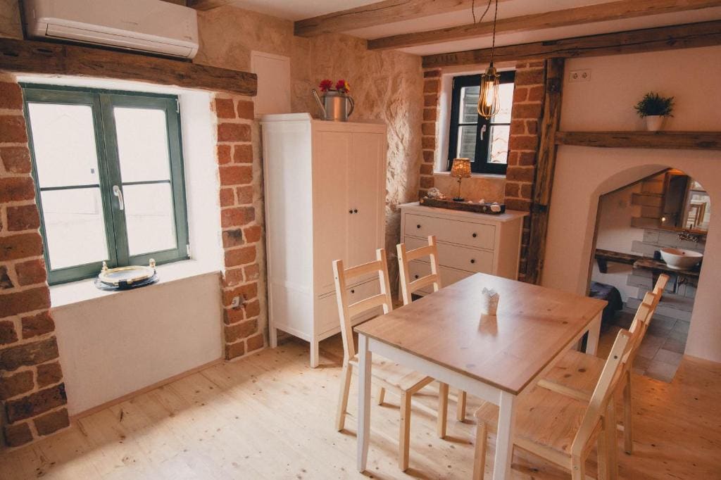 The apartment is located on the main street in old town Skradin, just 100 meters from the shore and the boat to the KRKA waterfalls.You have 2x Bikes and SUP(stand up paddle) included. Grilling possibility in authentic Dalmatian style. ** For 3+ night stay- Boat ride on Krka river or Grilled fish included** Mediterranean Terrace: - Grill - Dining and lounge area Bedroom: - King size bed - TV - A/C Living room & Bedroom 2: -Couch/Bed for 2 person -A/C Kitchen Sport: -2 x Bikes -SUP