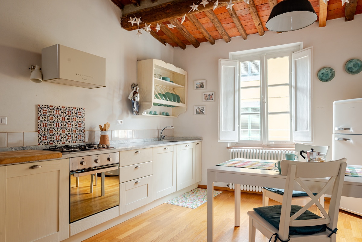 Renovated Apartment inside the Walls, in the center, on the first floor, few steps from Via Fillungo, the most prestigious pedestrian street in Lucca, famous for shopping and restaurants. Double bedroom, open kitchen, double sofa bed, bathroom with large shower. Original furniture, wood's beams, all comforts. Fully equipped kitchen, free wifi, Smart TV (Netflix, Amazon Prime), children under 6 years free. AUTOMATIC DISCOUNTS (Airbnb) for longer stays: 8% ≥2 • 10% ≥3 • 15% ≥7 • 22% ≥30