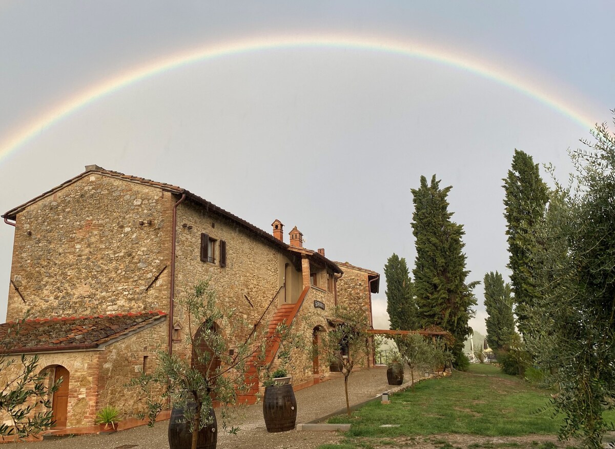 La Tenuta è un posto magico, dove il fascino dell'agriturismo e della storia si fondono con la comodità di camere tecnologiche dotate di ogni confort. Le 16 camere (dotate di A/C) sono state realizzate in un casolare in pietra del 1700 circondato da vigneti e oliveti. Si trova a meno di 2 km da San Gimignano raggiungibile anche con una passeggiata di 30 minuti sulla storica "via vecchia ". A disposizione degli ospiti la piscina panoramica e il ns ristorante Da Pode che si trova a circa 70mt.