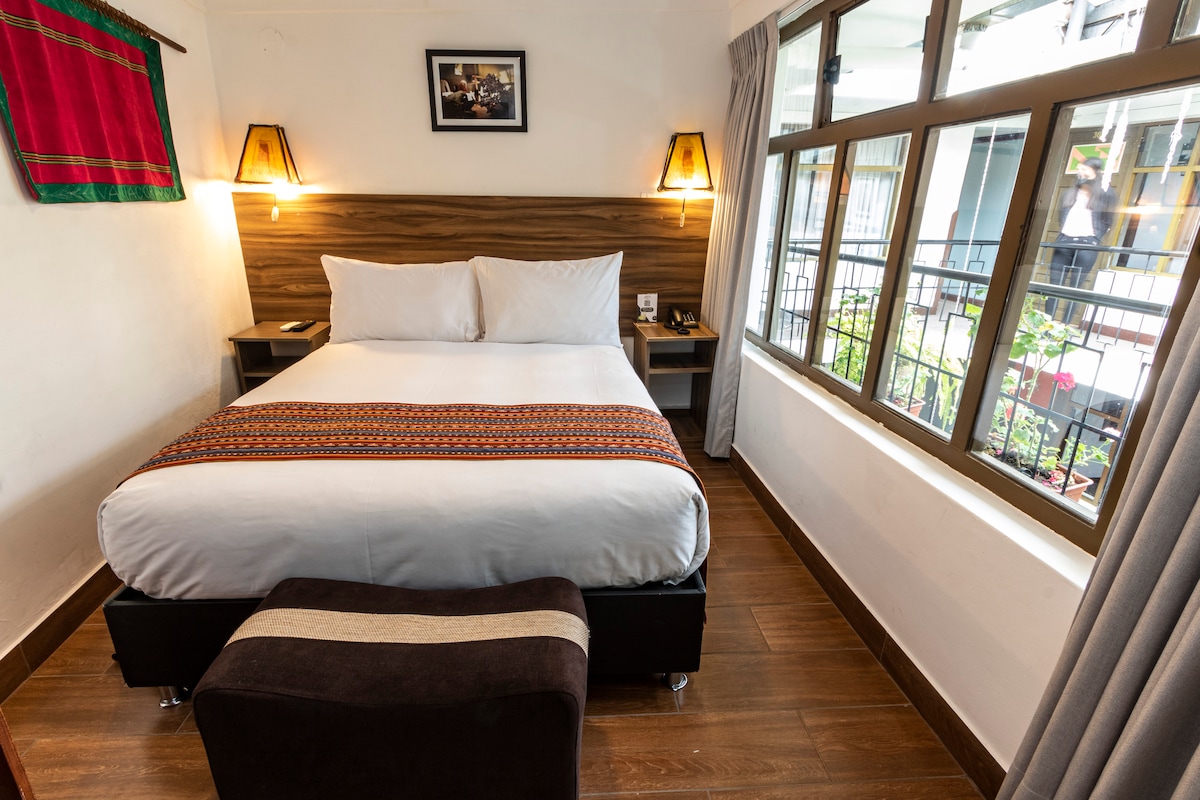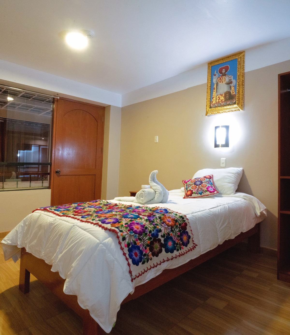 Moderno hotel en el centro histórico con decoración propia de la zona. Cómoda habitación en el TERCER PISO, cuenta con moderno BAÑO PRIVADO EN LA HABITACIÓN, agua caliente las 24 hrs, smart TV, Internet de alta velocidad (300 Mb). Espacio amplio para trabajar, calefacción. Nos encontramos a 2 cuadras del Korycancha (Templo Inca del sol) y a 8 minutos caminando a la plaza principal del centro histórico de Cusco. Almacén de equipaje gratuito antes y después de su estadía. NO incluye desayuno.