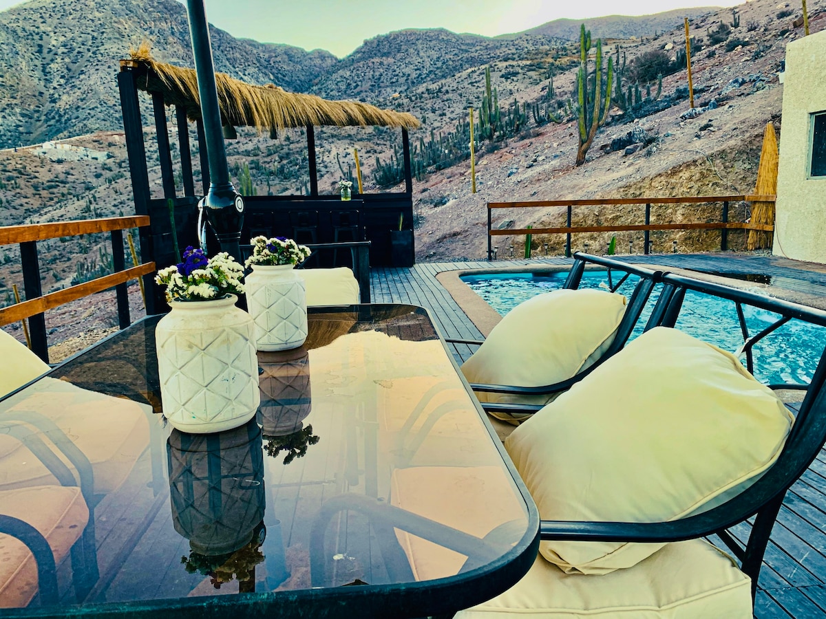 Waking up with the first rays of the sun and the sound of the birds greeting us in the morning. Listening to the sound of the wind swaying the imposing cacti that, like guardians, protect the house, warning us that the time to set the sails has arrived. The hills surrounding the vast valley invite us to reflect, along with the most beautiful sunsets in this corner of the world. When night falls, the clear skies allow us to appreciate the vastness of the heavens. Hot tub (NO additional charge).