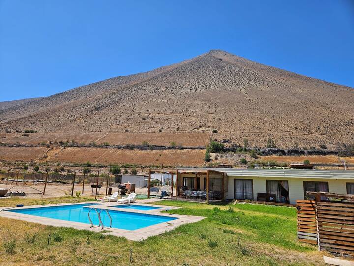 Es una casa estilo moderno muy acogedora amoblada completamente, ubicada en el mejor sector de Pisco Elqui, con vista privilegiada, está cerca del Río Claro es un lugar tranquilo que invita al relajo y la desconexión. A 4km de la plaza de Pisco Elqui, cercana de restaurantes , almacenes y lugares turísticos (cabalgatas,treking, masajes, yoga). Es importante señalar que los espacios están diseñados para familias o grupo de amigos