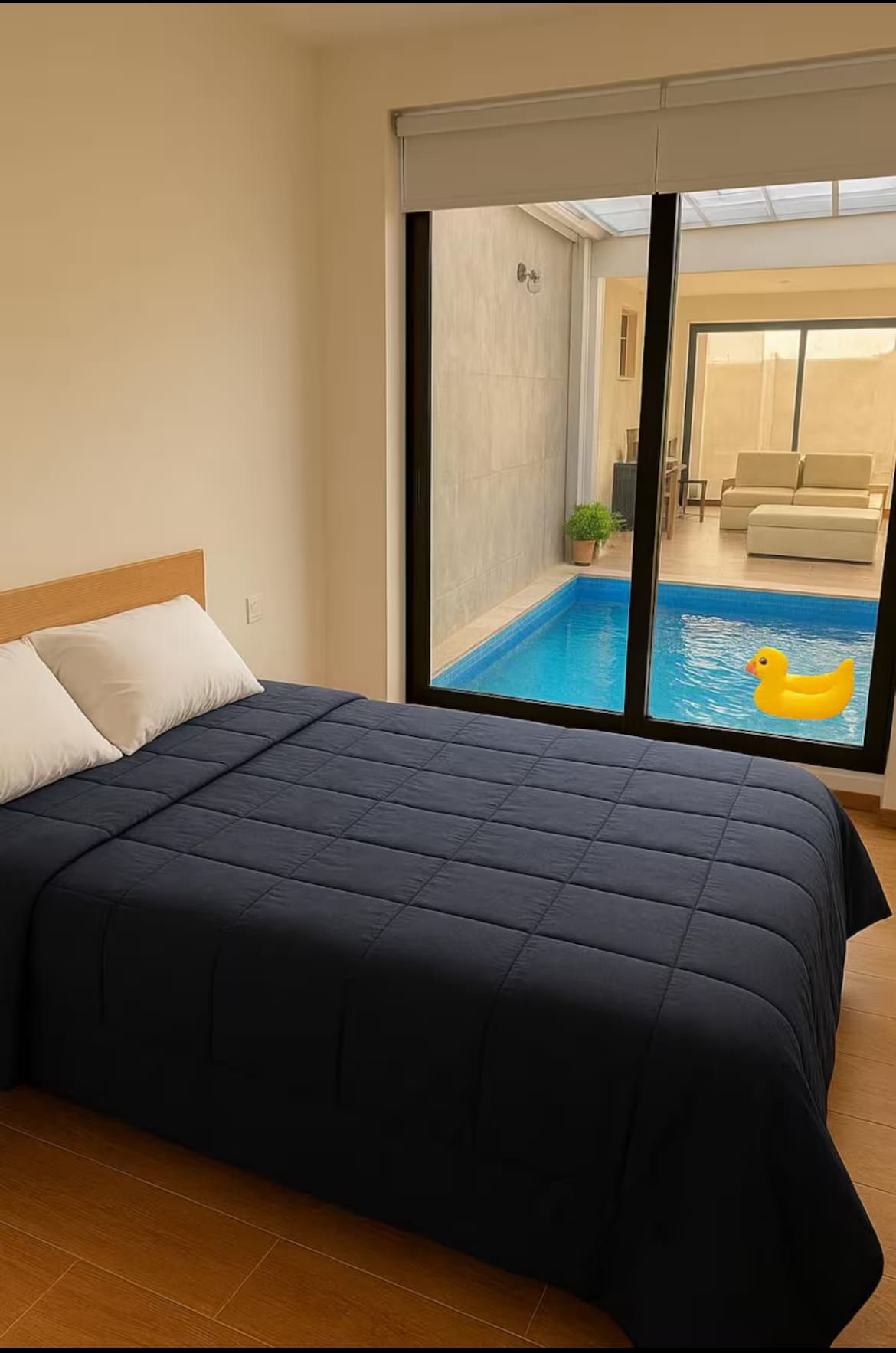 Welcome to our cozy holiday retreat. Discover the perfect getaway, ideally located to provide you with maximum tranquility and privacy! This elegant property, with capacity for 16 people, offers you peace and tranquility surrounded by fields of cotton crops and white hills, so you can enjoy unique experiences and memories with your family. Enjoy the pool and a large garden We have 24 hour security We are 25 minutes from Paracas and 1 hour from Ica